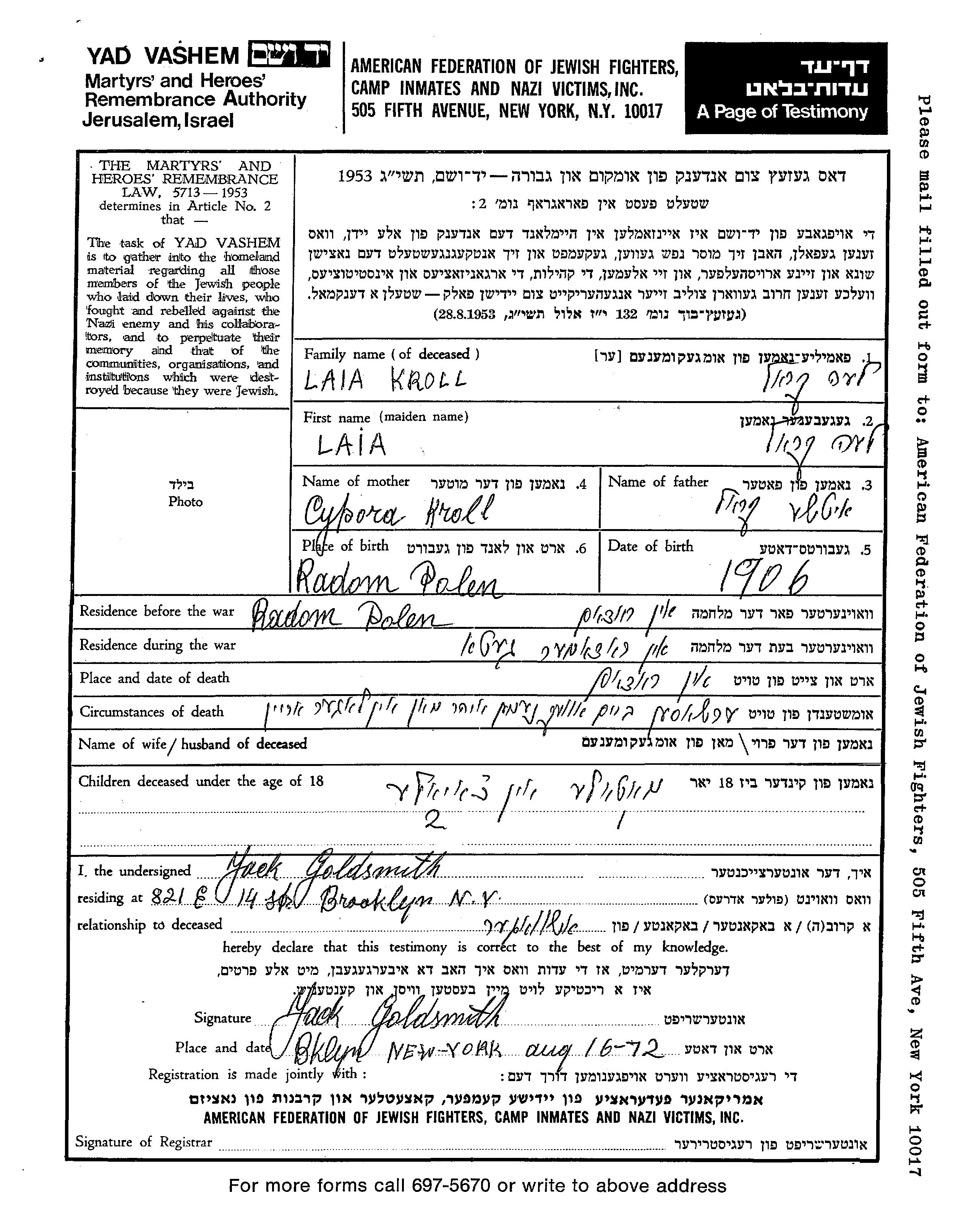 עיר/כפר, גטו/מחנה או אתר רצח או מחוז/אזור או מדינה. שם מקום ניתן לחפש רק בא-ב לטיני.