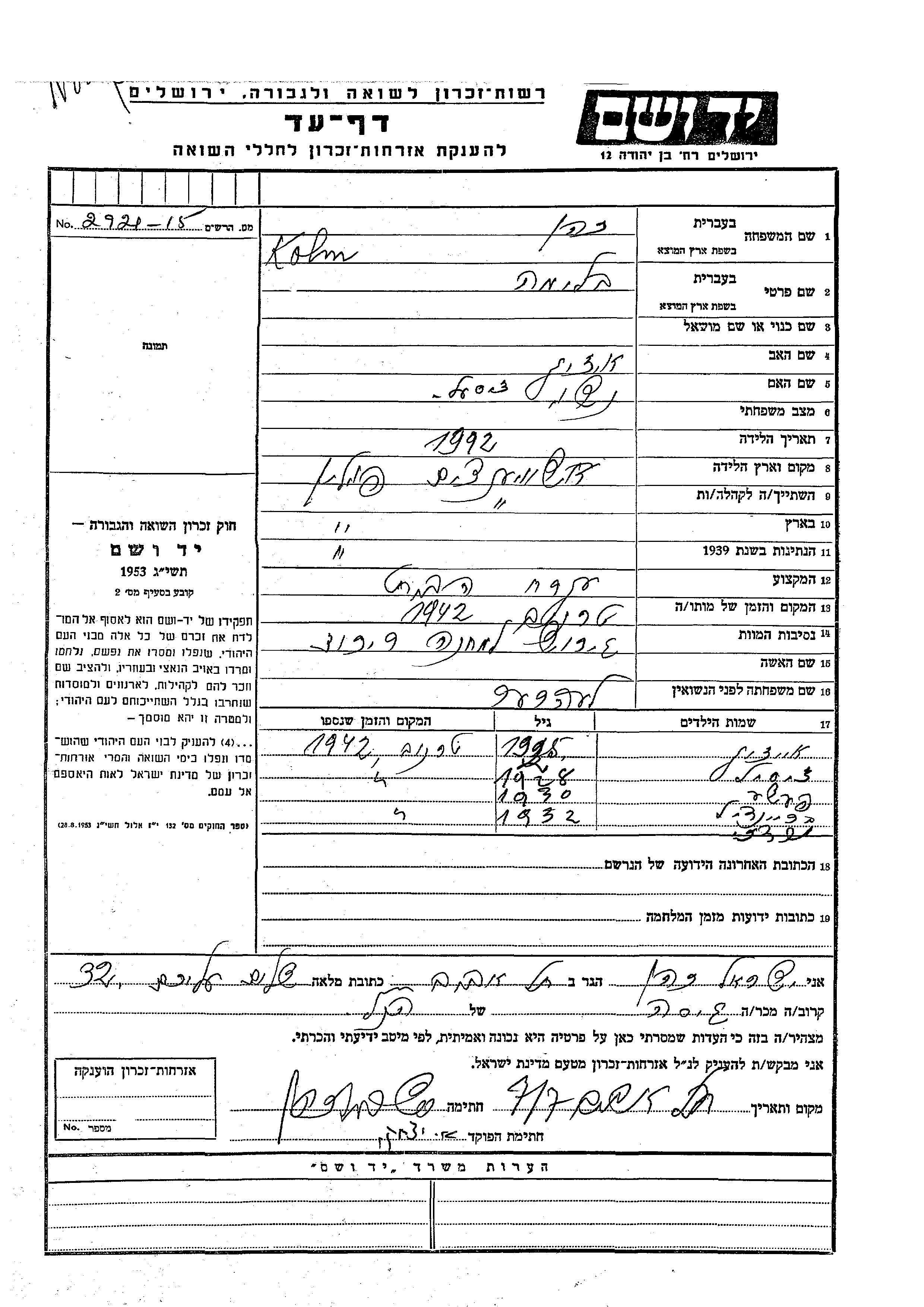 יד ושם - המפעל להנצחת השמות בדפי עד