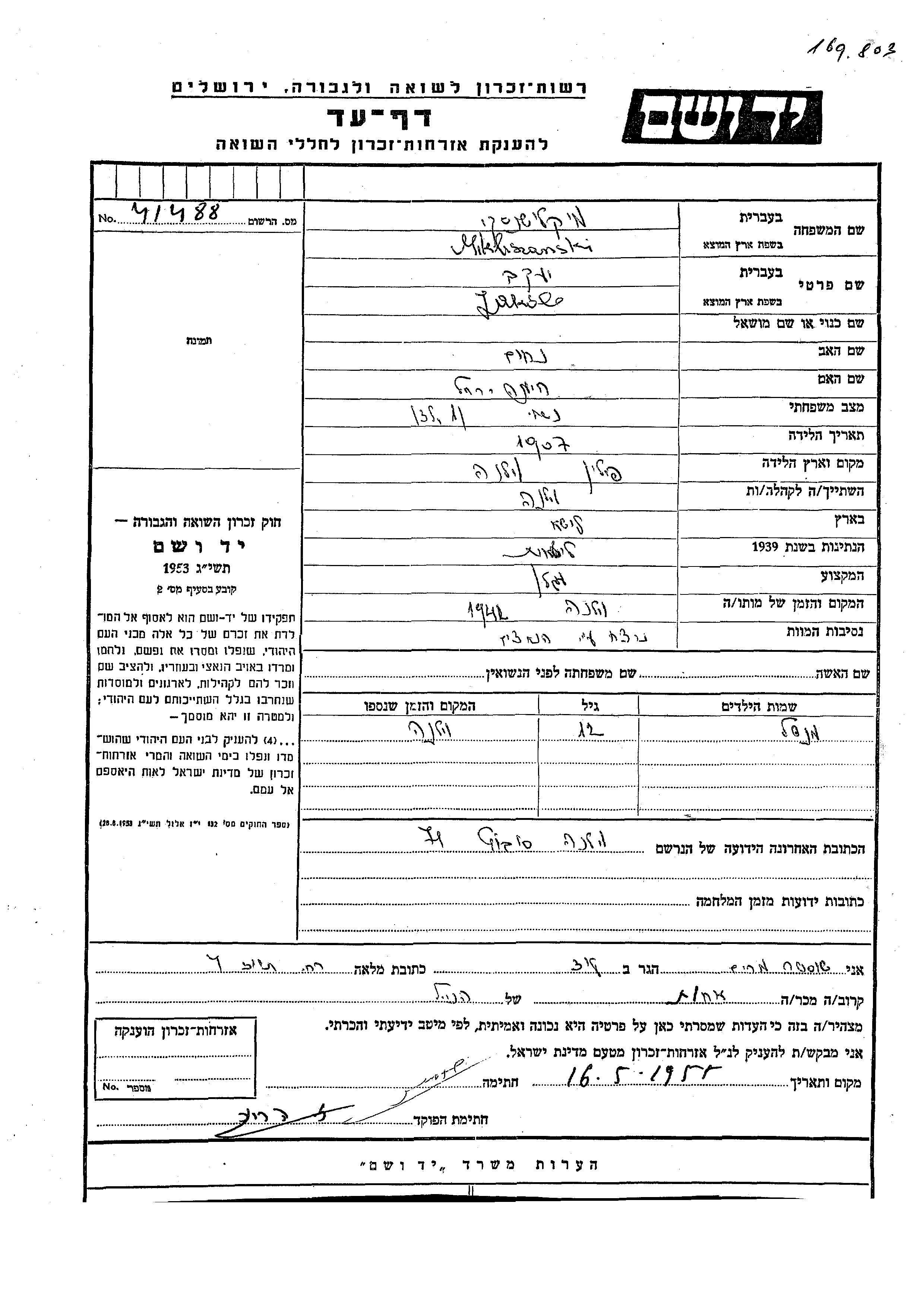 חיפוש שם מוסר דף העד. חיפוש לפי כל שם פרטי, כולל כינוי או שם חיבה