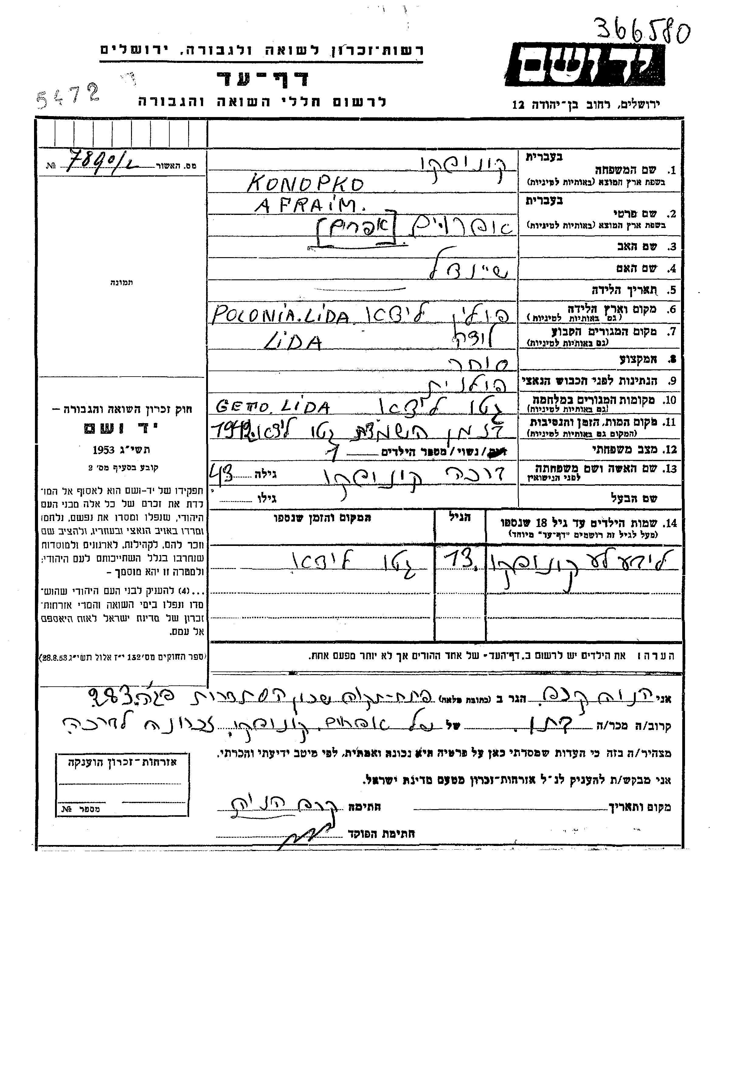 יד ושם - המפעל להנצחת השמות בדפי עד