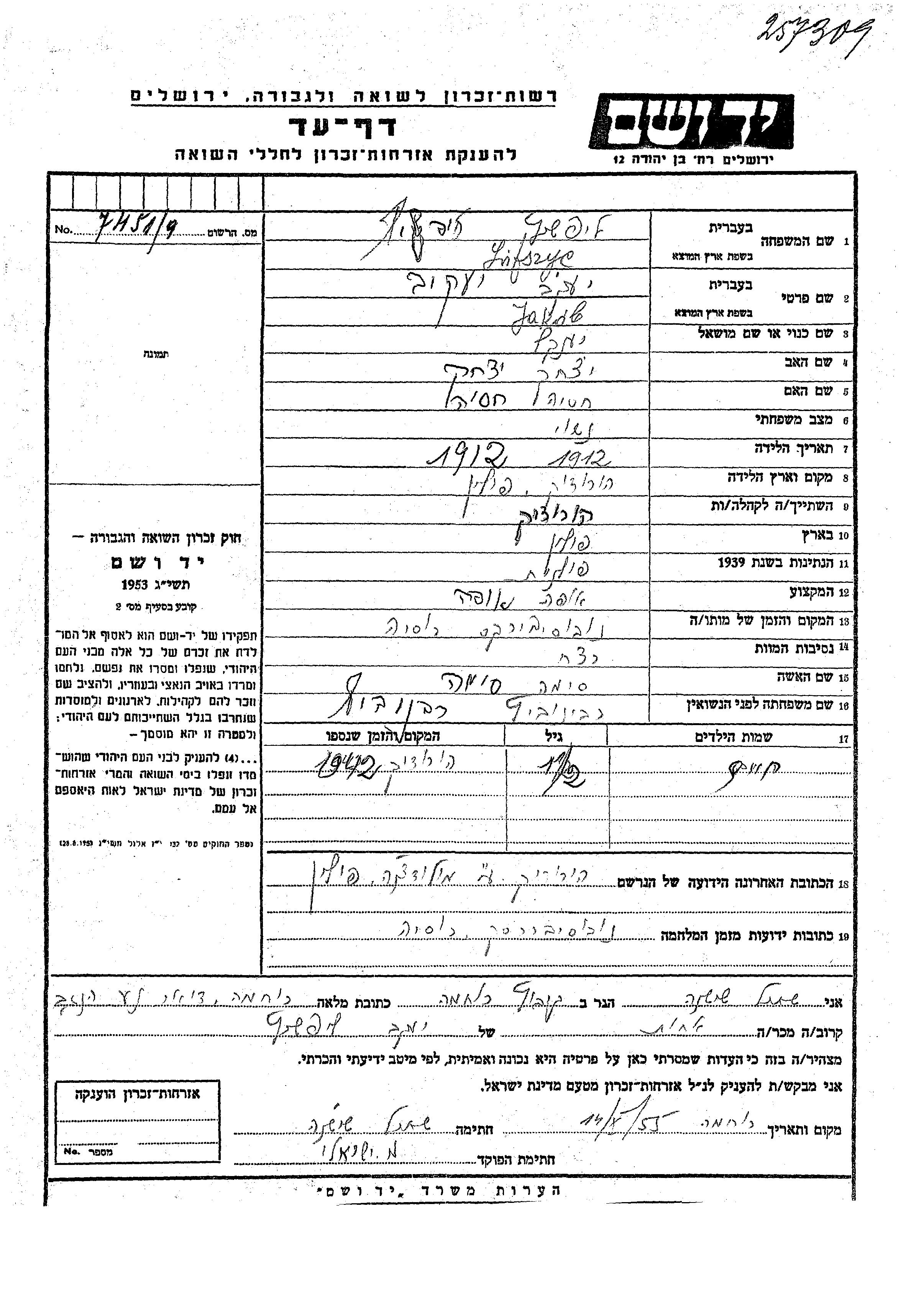 חיים Lifszyc נולד לJakob וסימה לבית רבינוביץ. הוא היה ילד. לפני מלחמת העולם השניה התגורר בHorodek שבפולין. בזמן המלחמה הוא היה בפולין. חיים נרצח בשואה.