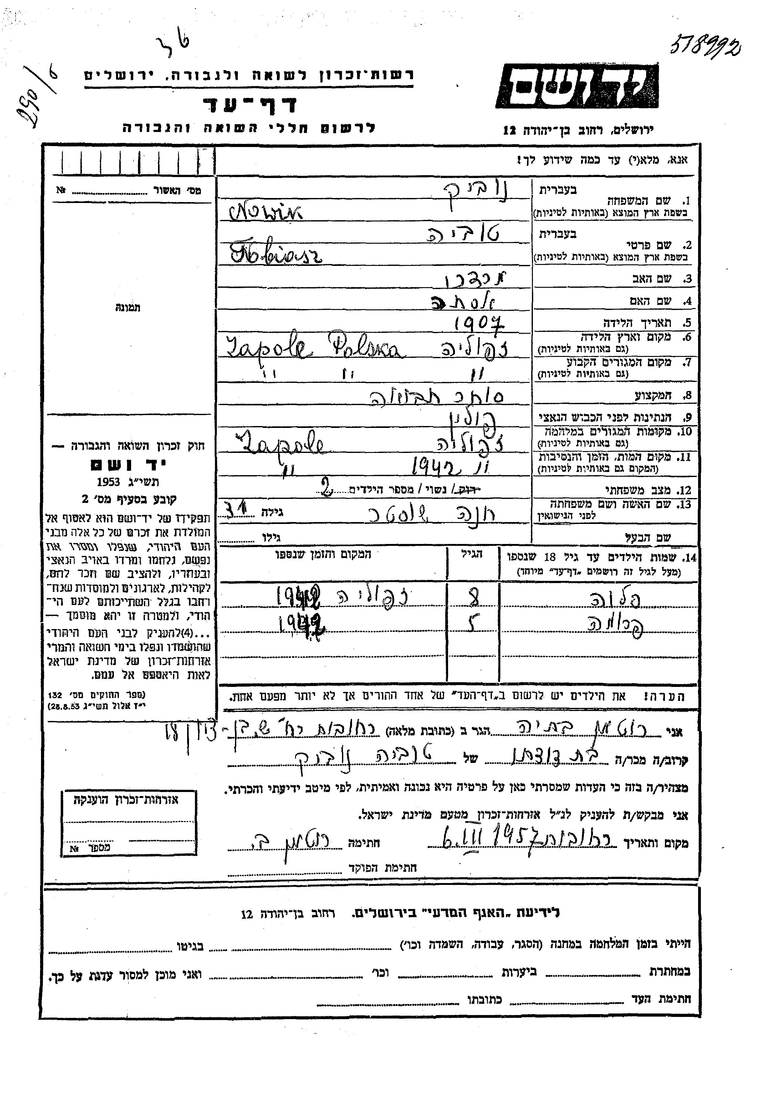 יד ושם - המפעל להנצחת השמות בדפי עד