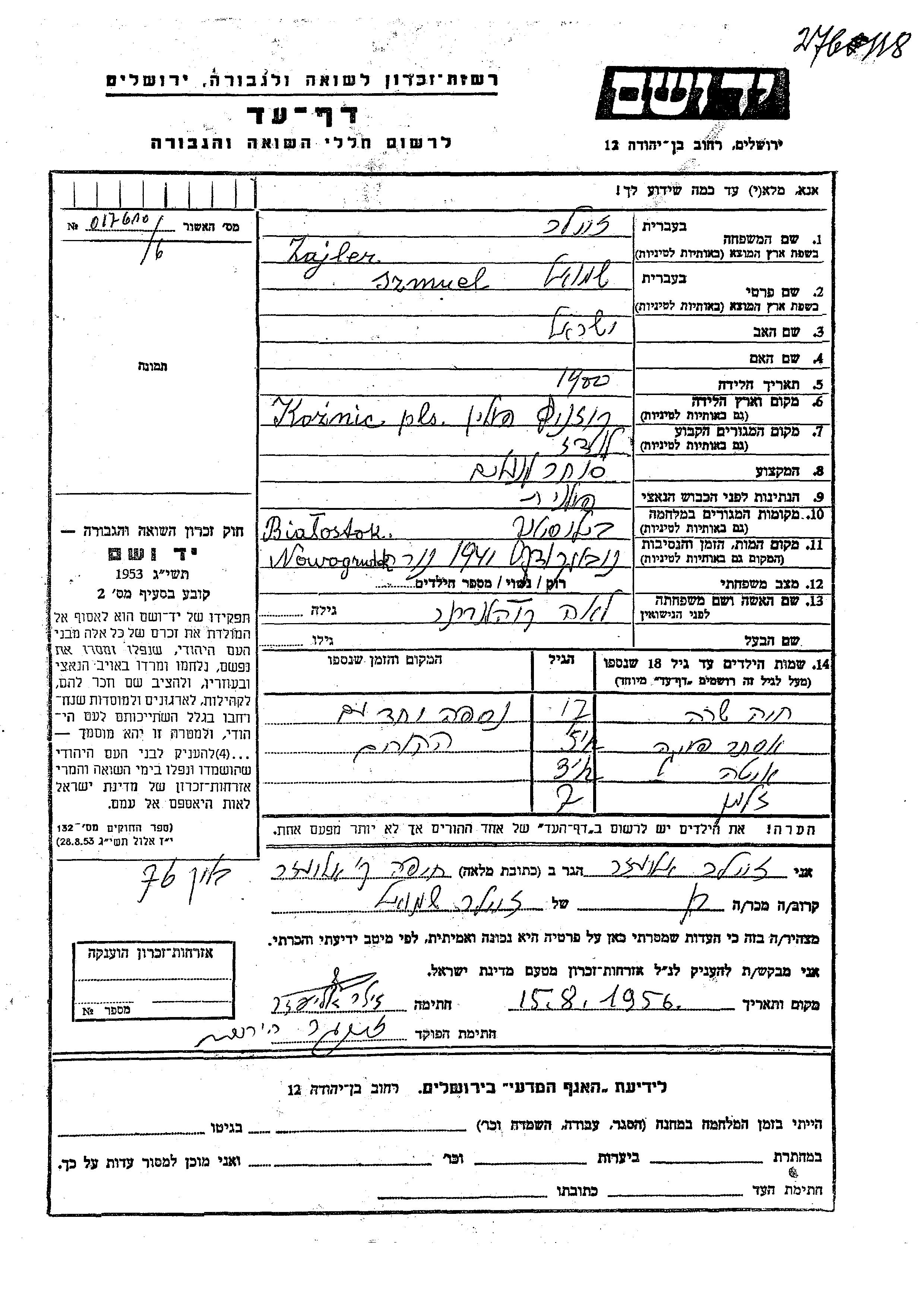 יד ושם - המפעל להנצחת השמות בדפי עד