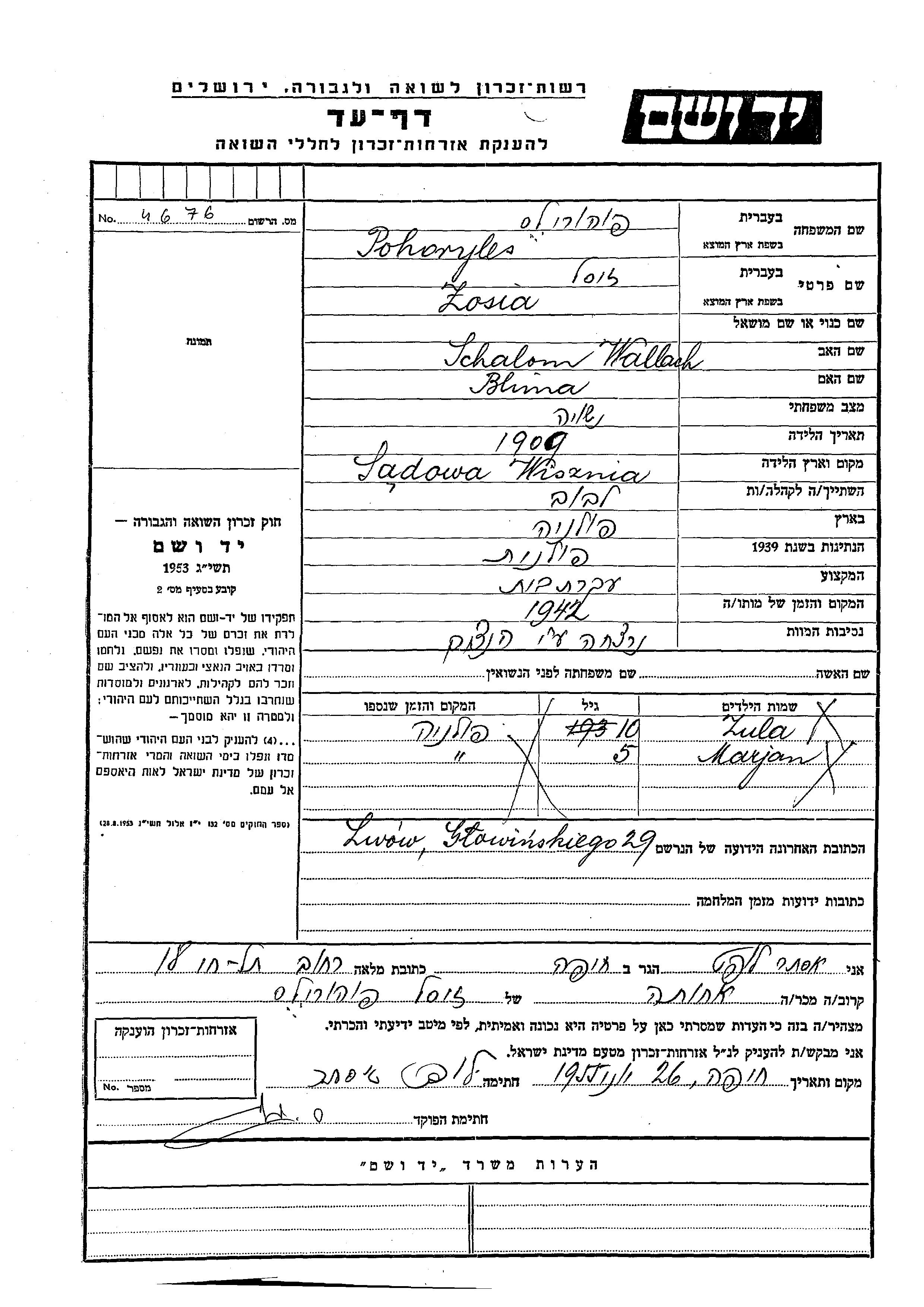 יד ושם - המפעל להנצחת השמות בדפי עד