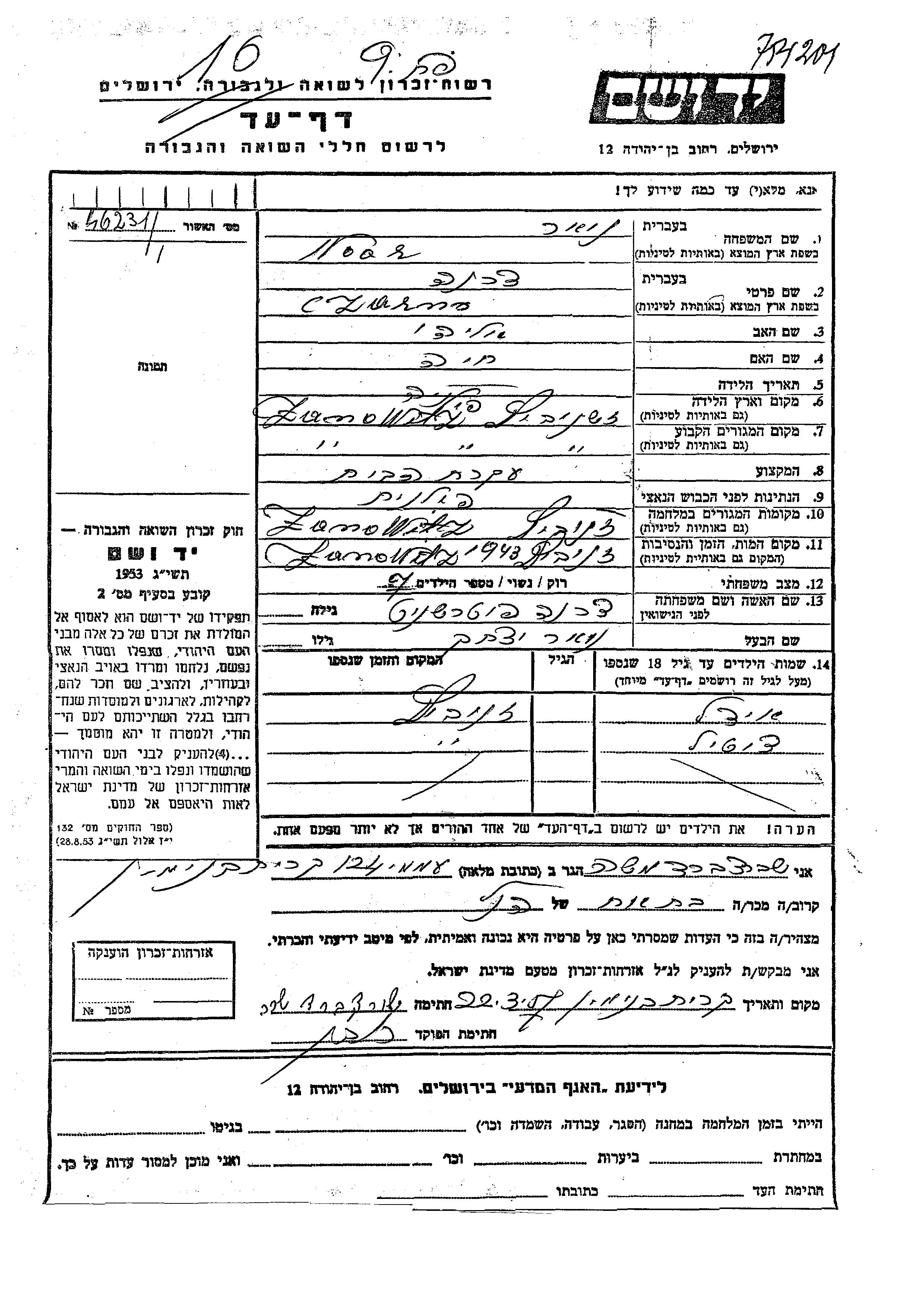 חיפוש שם מוסר דף העד. חיפוש לפי כל שם פרטי, כולל כינוי או שם חיבה