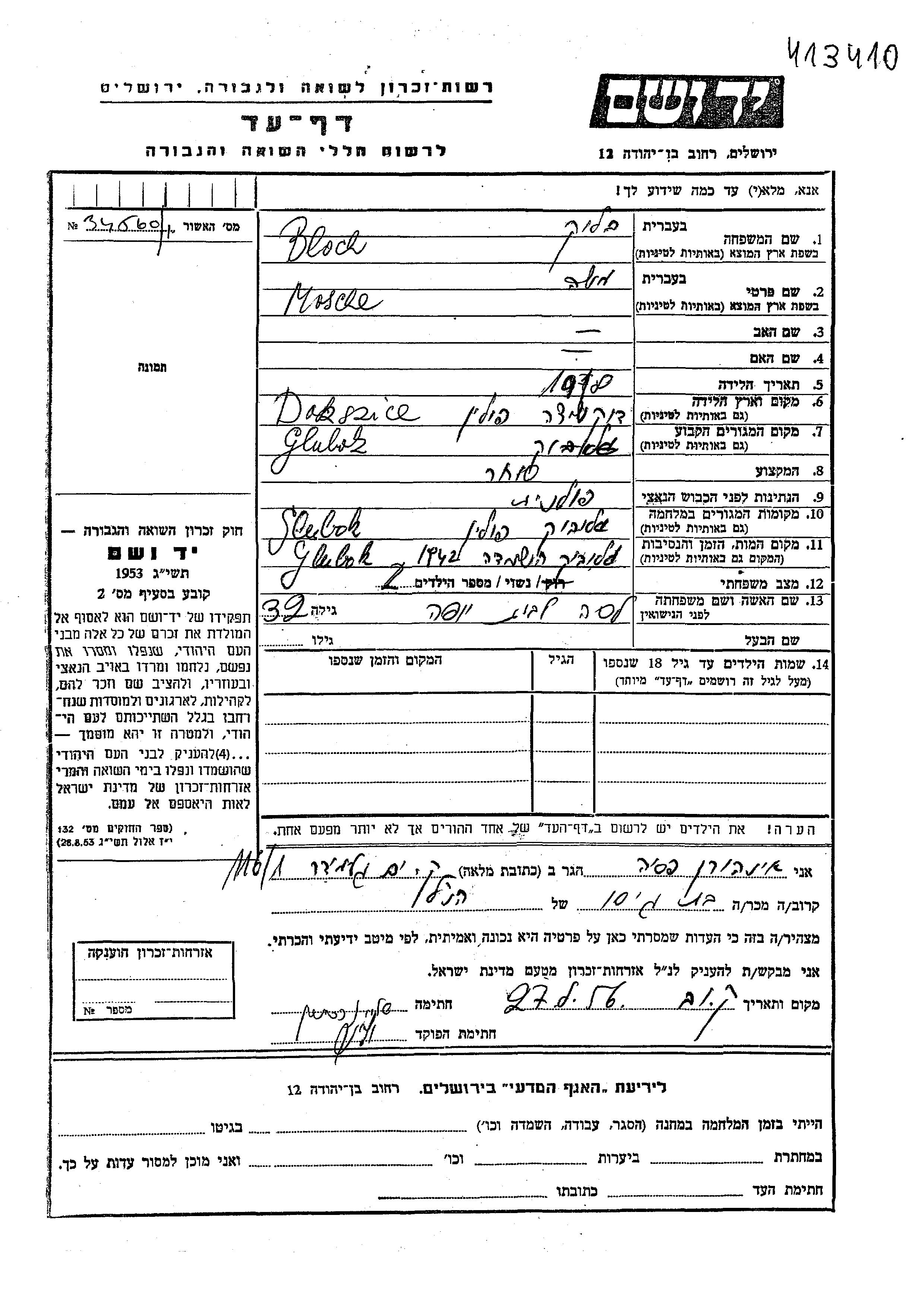 חיפוש שם מוסר דף העד. חיפוש לפי כל שם פרטי, כולל כינוי או שם חיבה