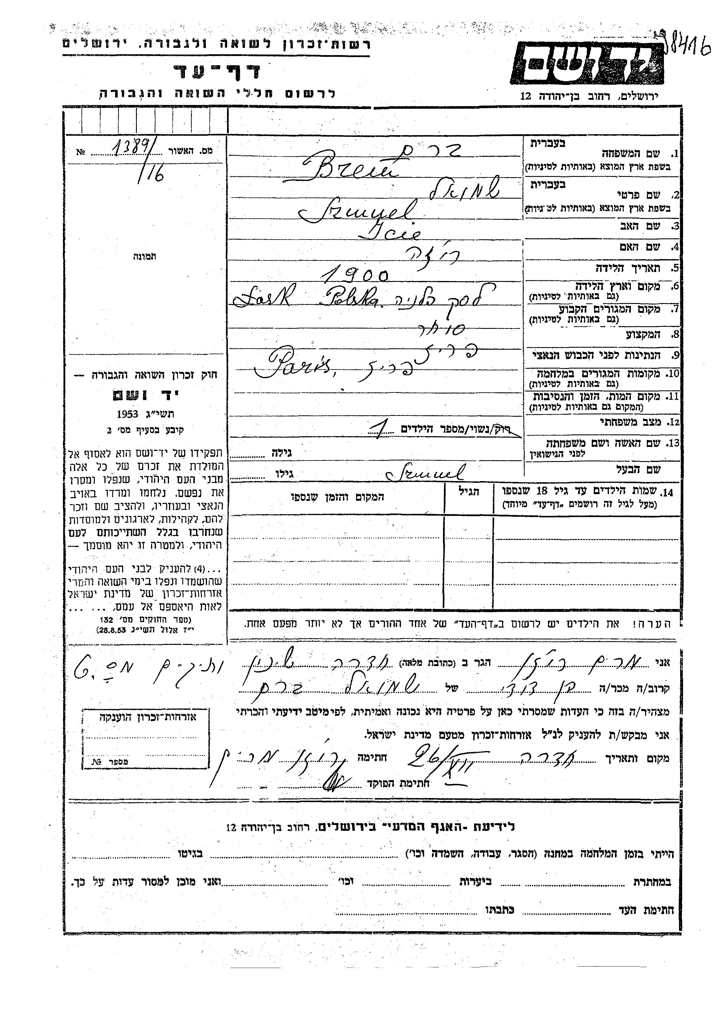 ברם Szmuel 1900 מקום לא רשום, דף-עד