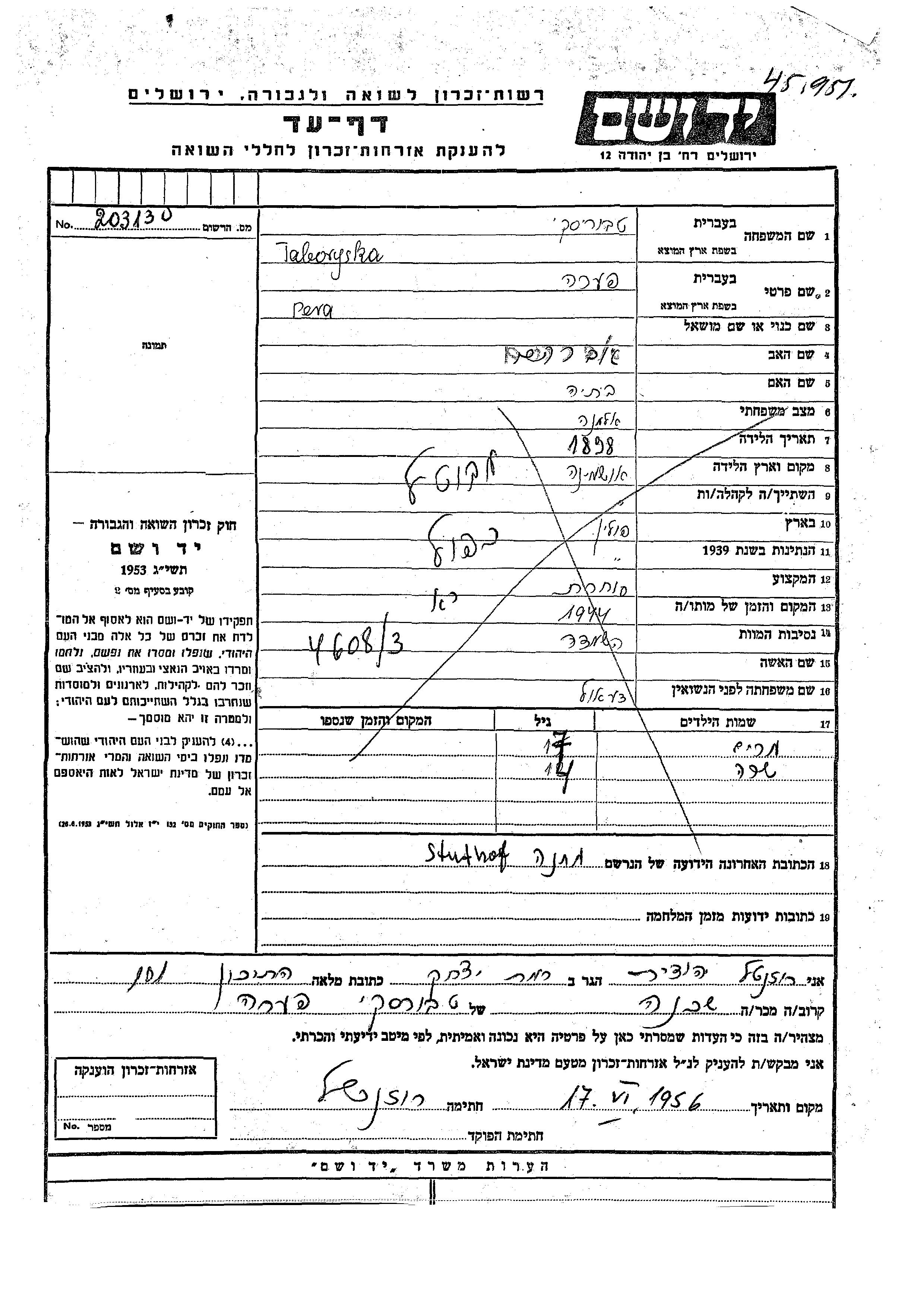 יד ושם - המפעל להנצחת השמות בדפי עד
