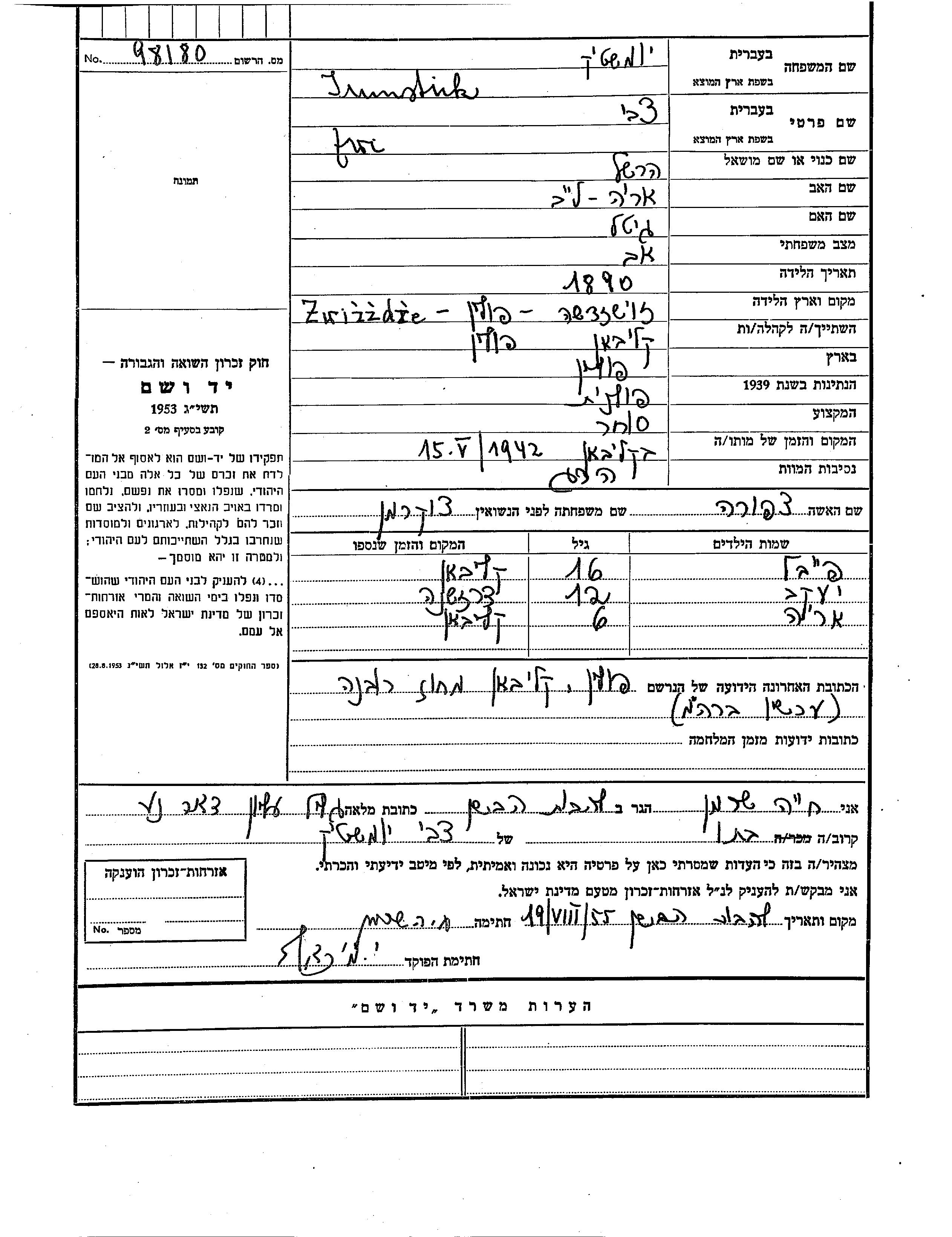 יעקב Jumstick נולד לZwi הרשל וציפורה לבית צוקרמן. הוא היה ילד. לפני מלחמת העולם השניה התגורר בKlewań שבפולין. בזמן המלחמה הוא היה בKlewań שבפולין. יעקב נרצח בשואה.