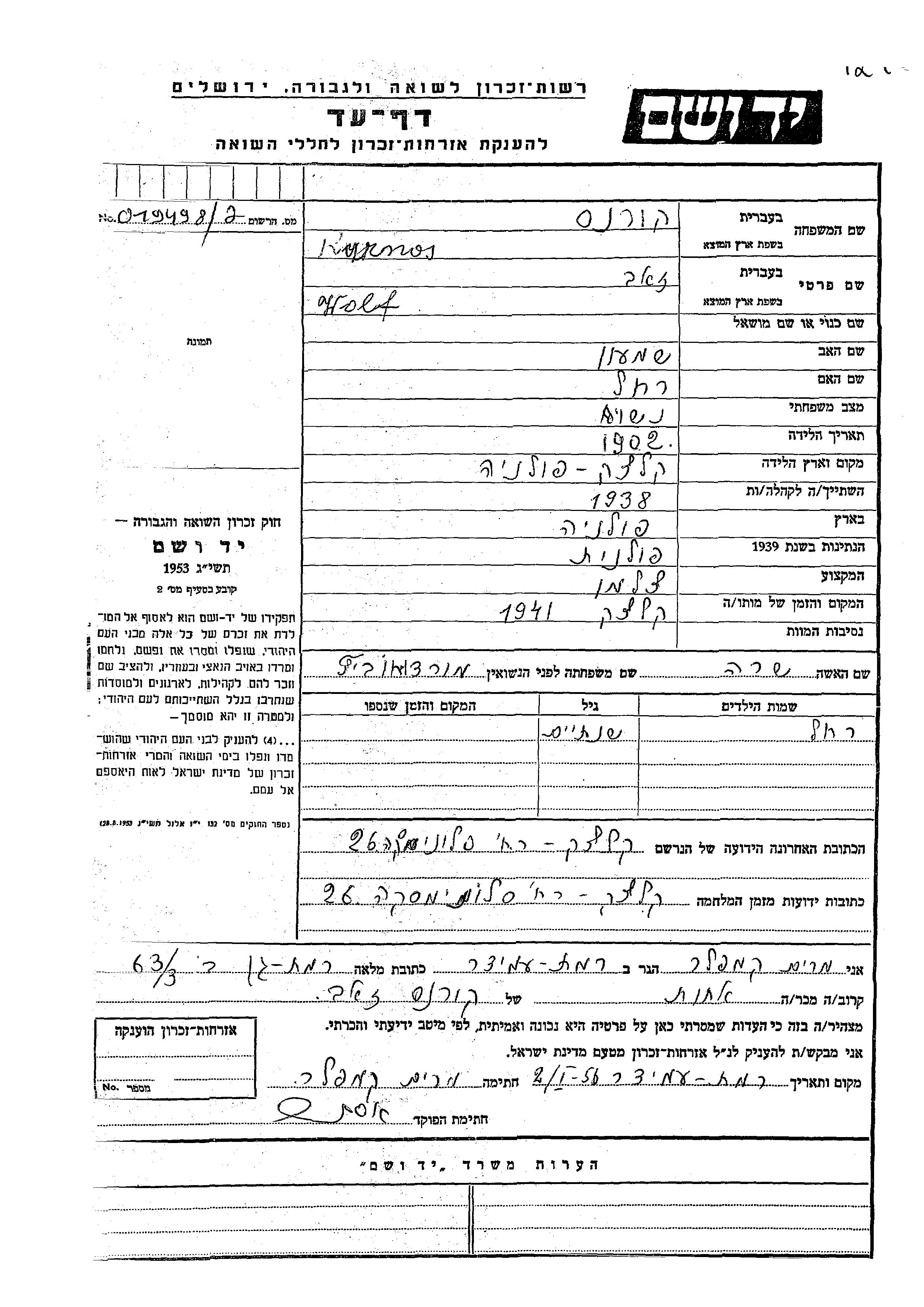 יד ושם - המפעל להנצחת השמות בדפי עד
