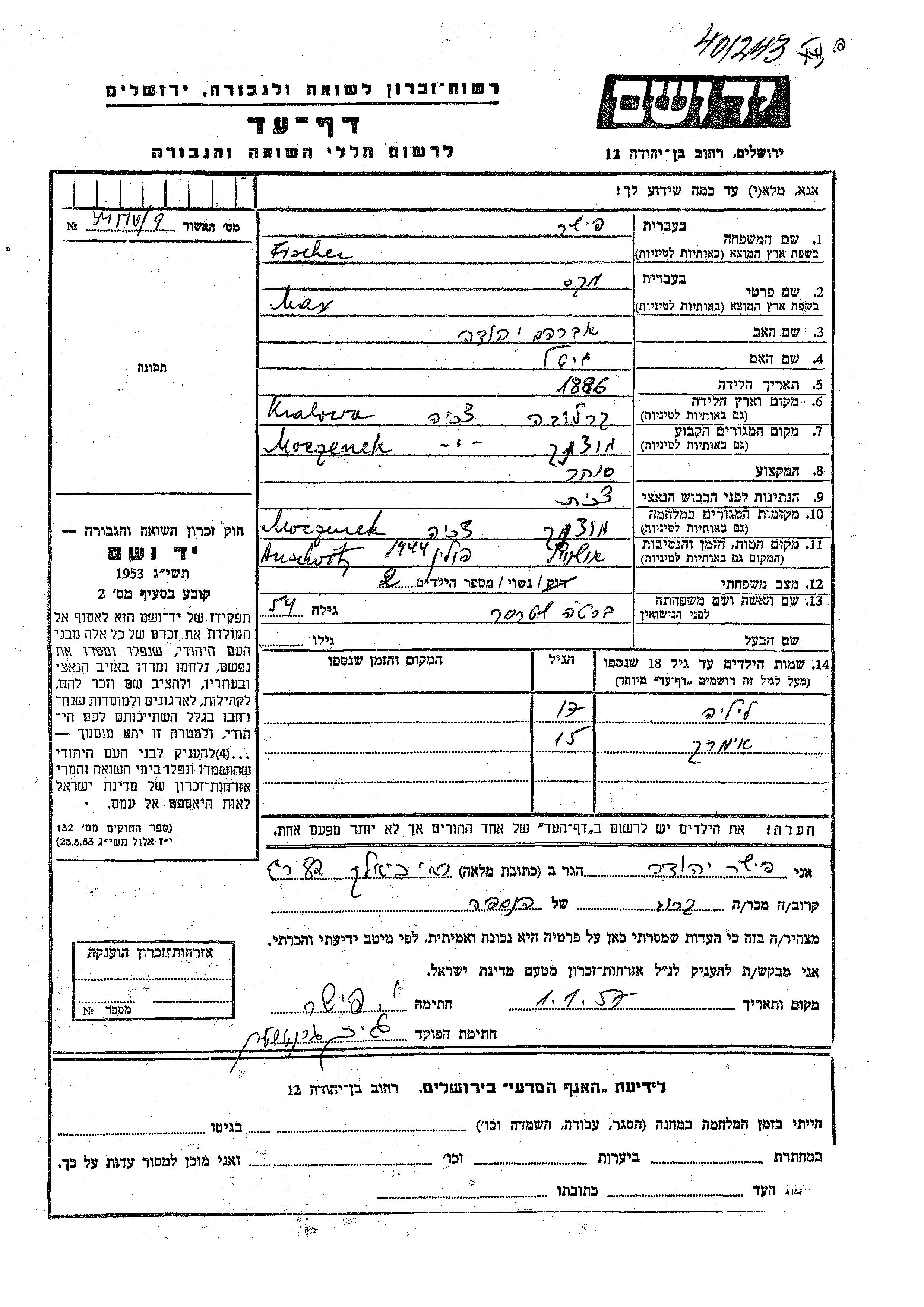יד ושם - המפעל להנצחת השמות בדפי עד