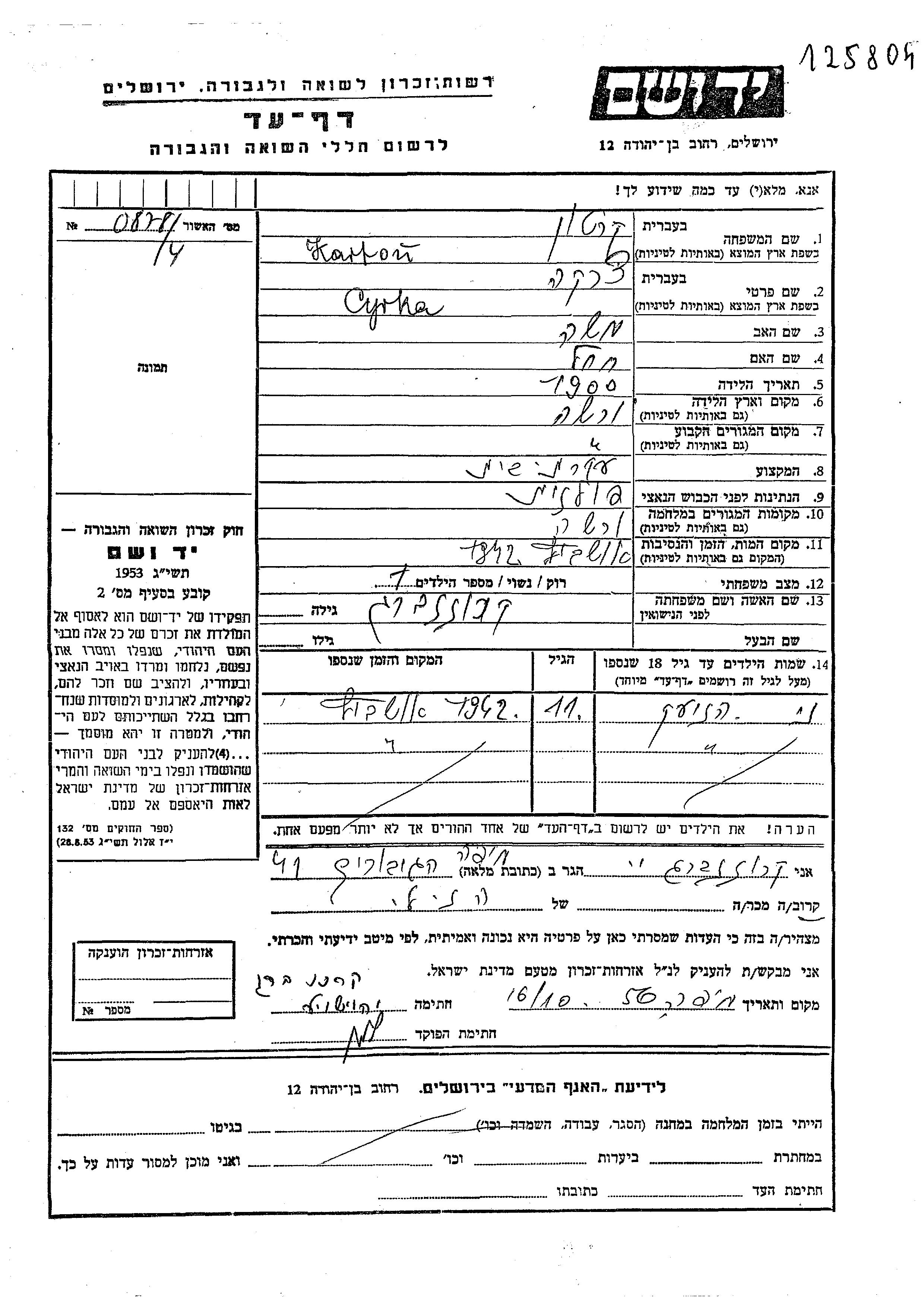 חיפוש שם מוסר דף העד. חיפוש לפי כל שם פרטי, כולל כינוי או שם חיבה
