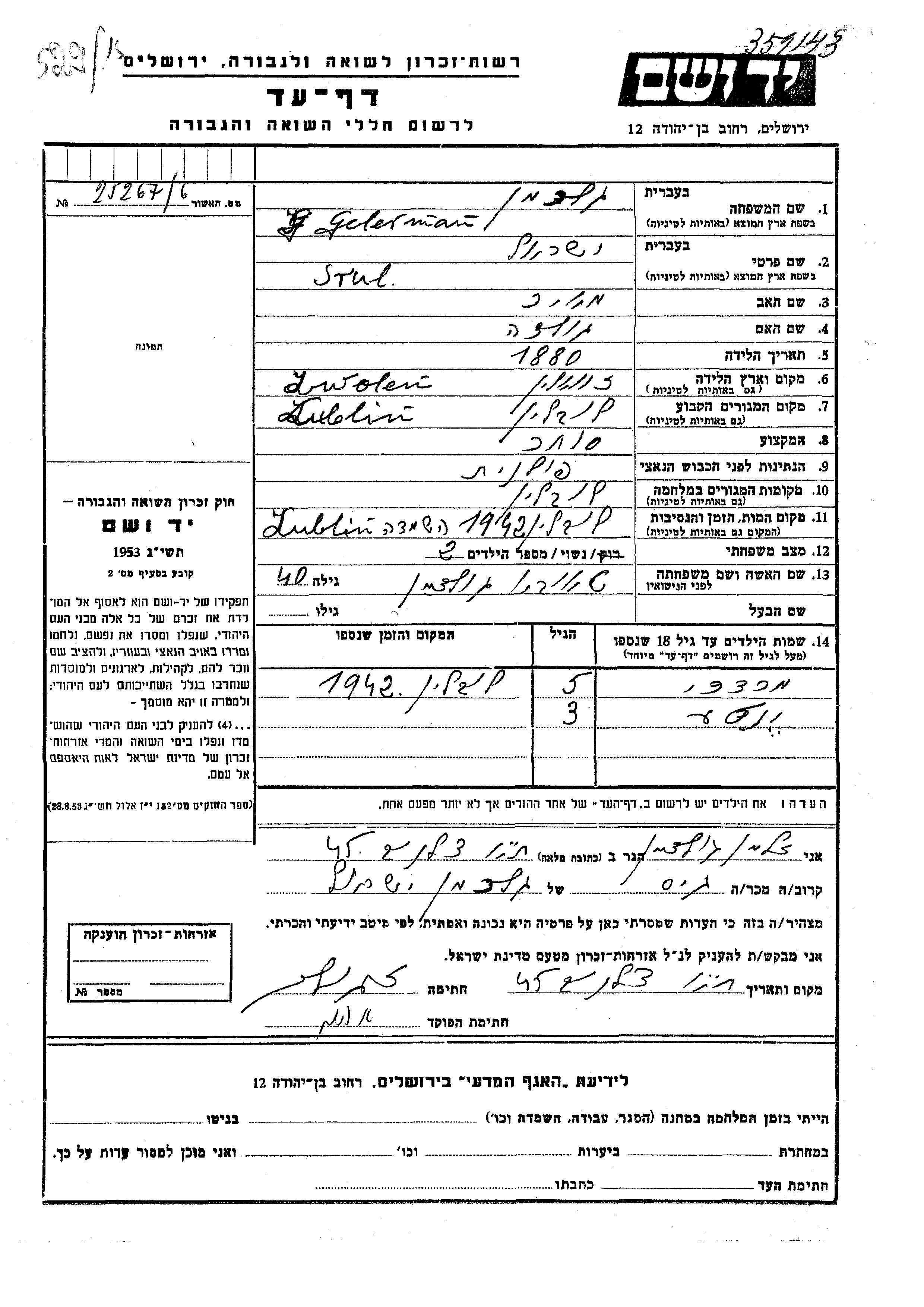 גלרמן סרול 1880 Lublin, פולין דף-עד