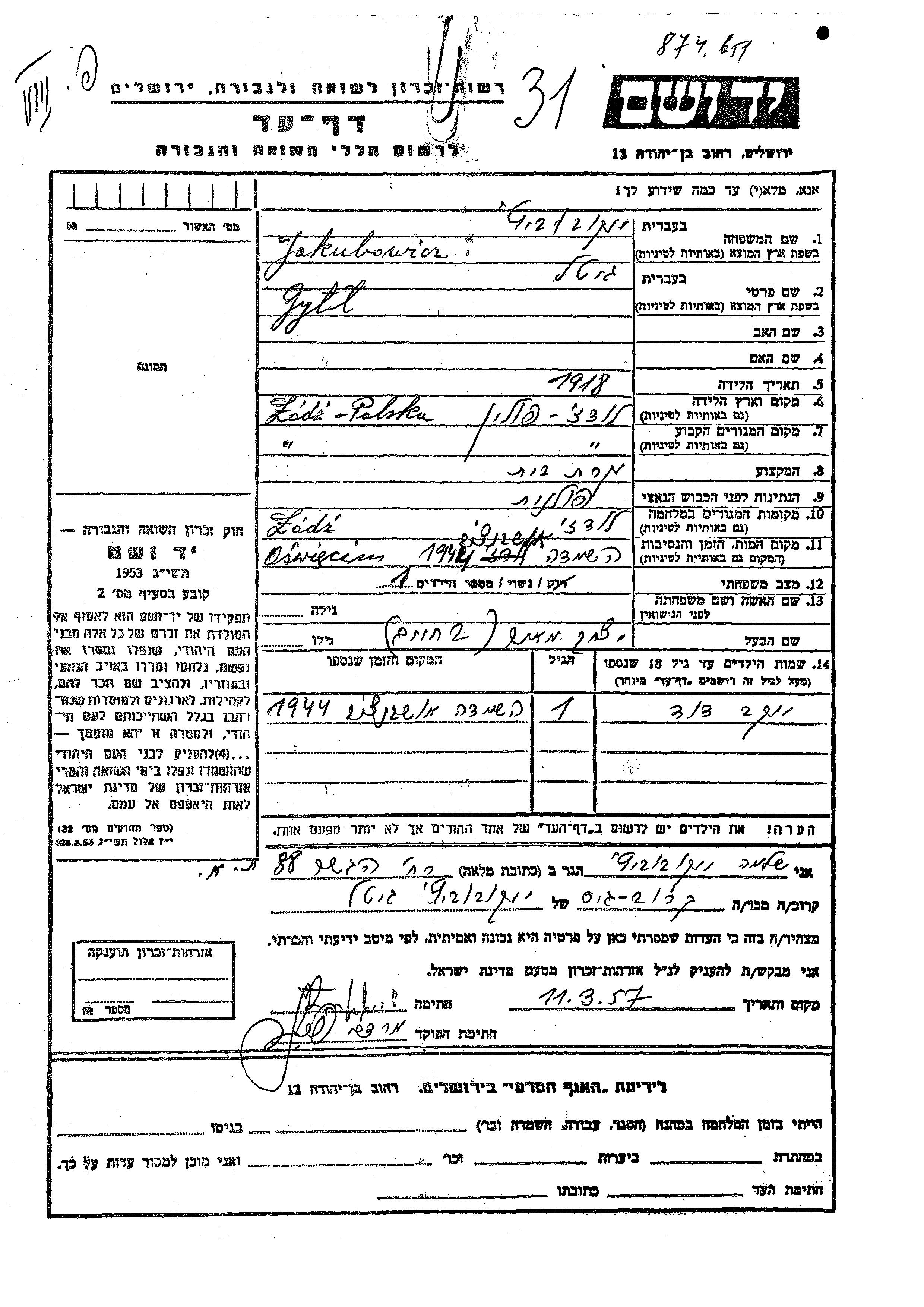 יעקב דוד Jakubowicz נולד ליצחק מאיר וGytl. הוא היה ילד. לפני מלחמת העולם השניה התגורר בLodz שבפולין. בזמן המלחמה הוא היה בLodz שבפולין. יעקב דוד נרצח בשואה.