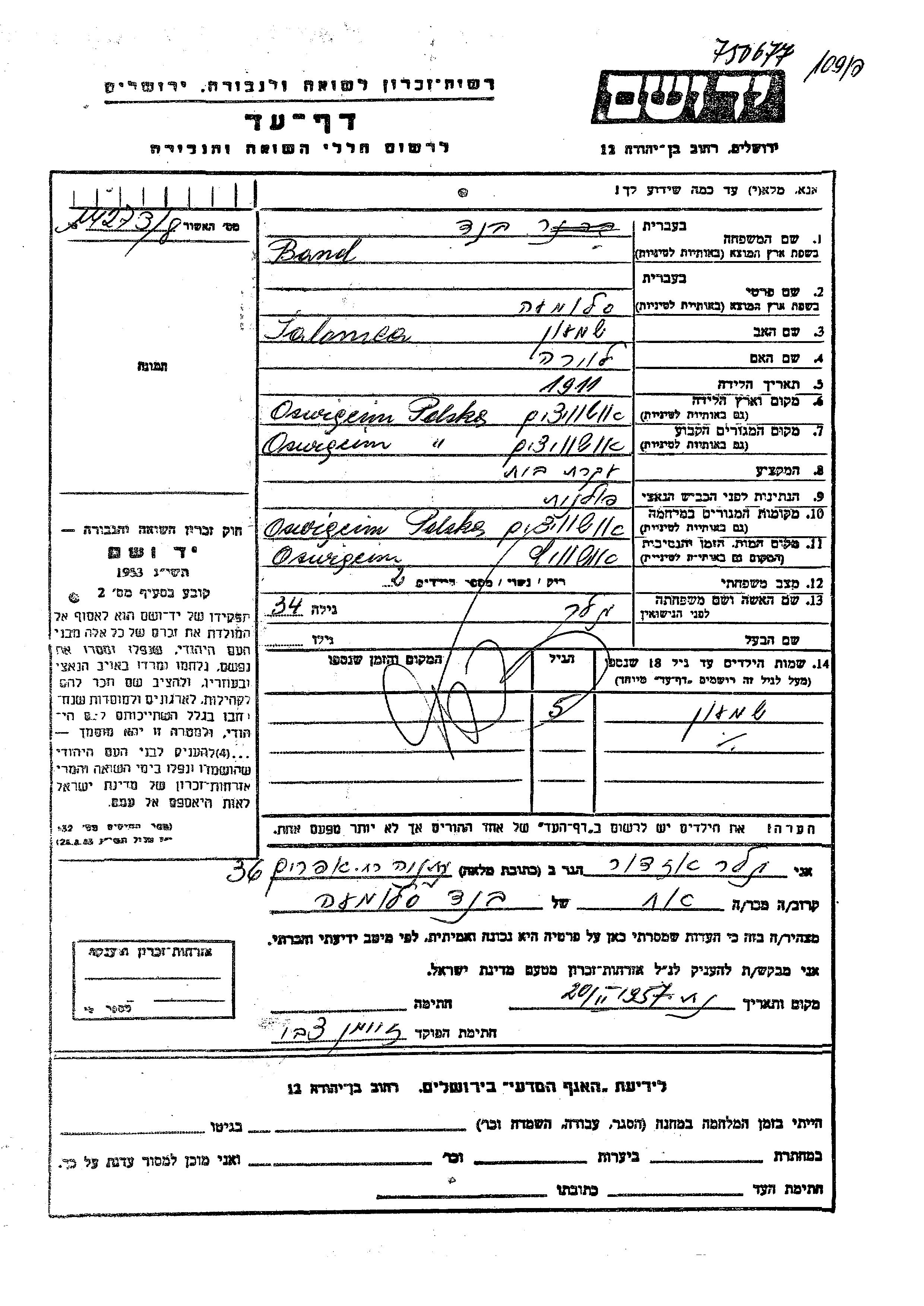 יד ושם - המפעל להנצחת השמות בדפי עד