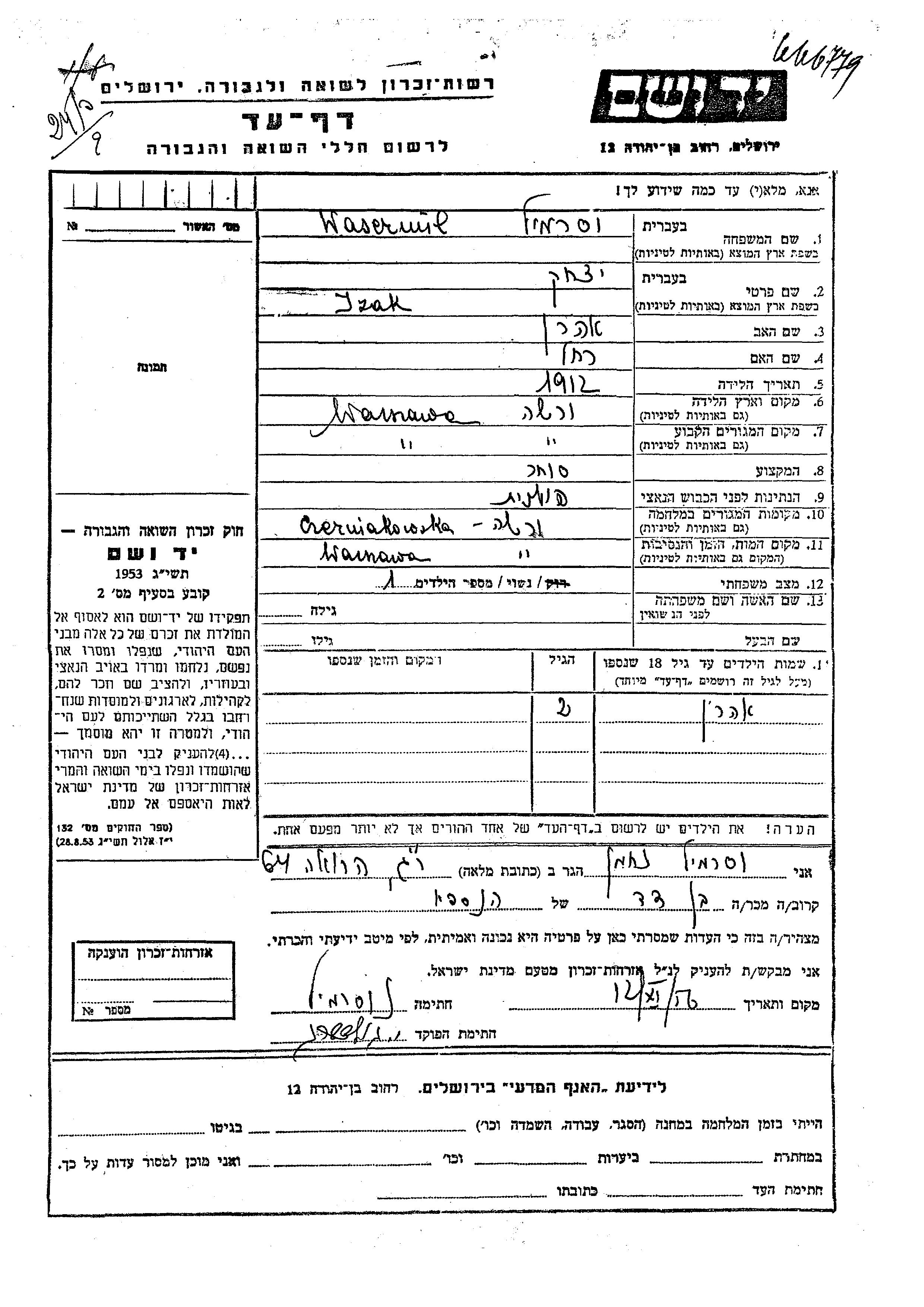 חיפוש שם מוסר דף העד. חיפוש לפי כל שם פרטי, כולל כינוי או שם חיבה