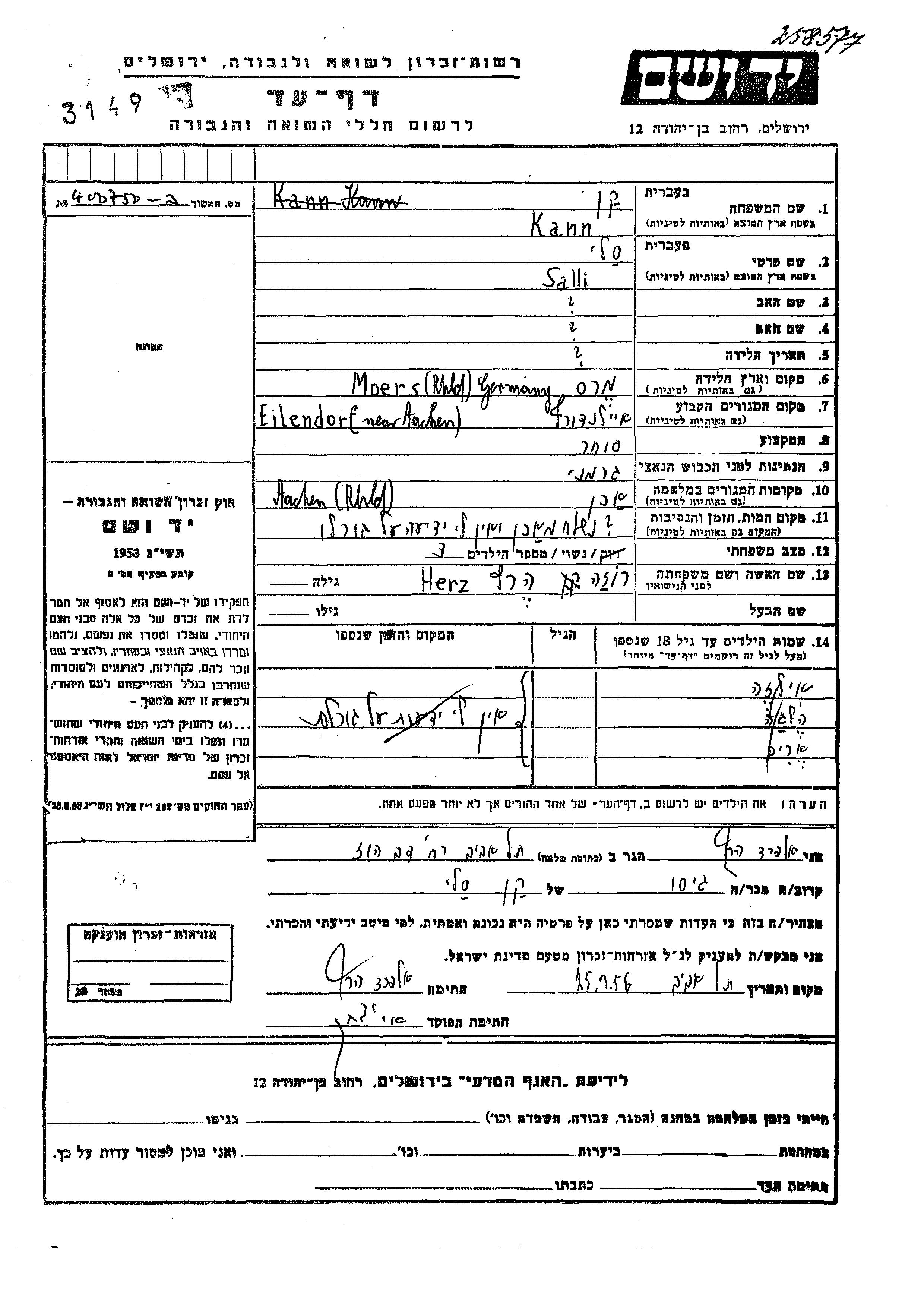 הלגה Kann נולדה לרוזה וSalli לבית Herz. היא היתה ילדה. לפני מלחמת העולם השניה התגוררה בEilendorf שבגרמניה. בזמן המלחמה היא היתה בAachen שבגרמניה. הלגה נרצחה בשואה.