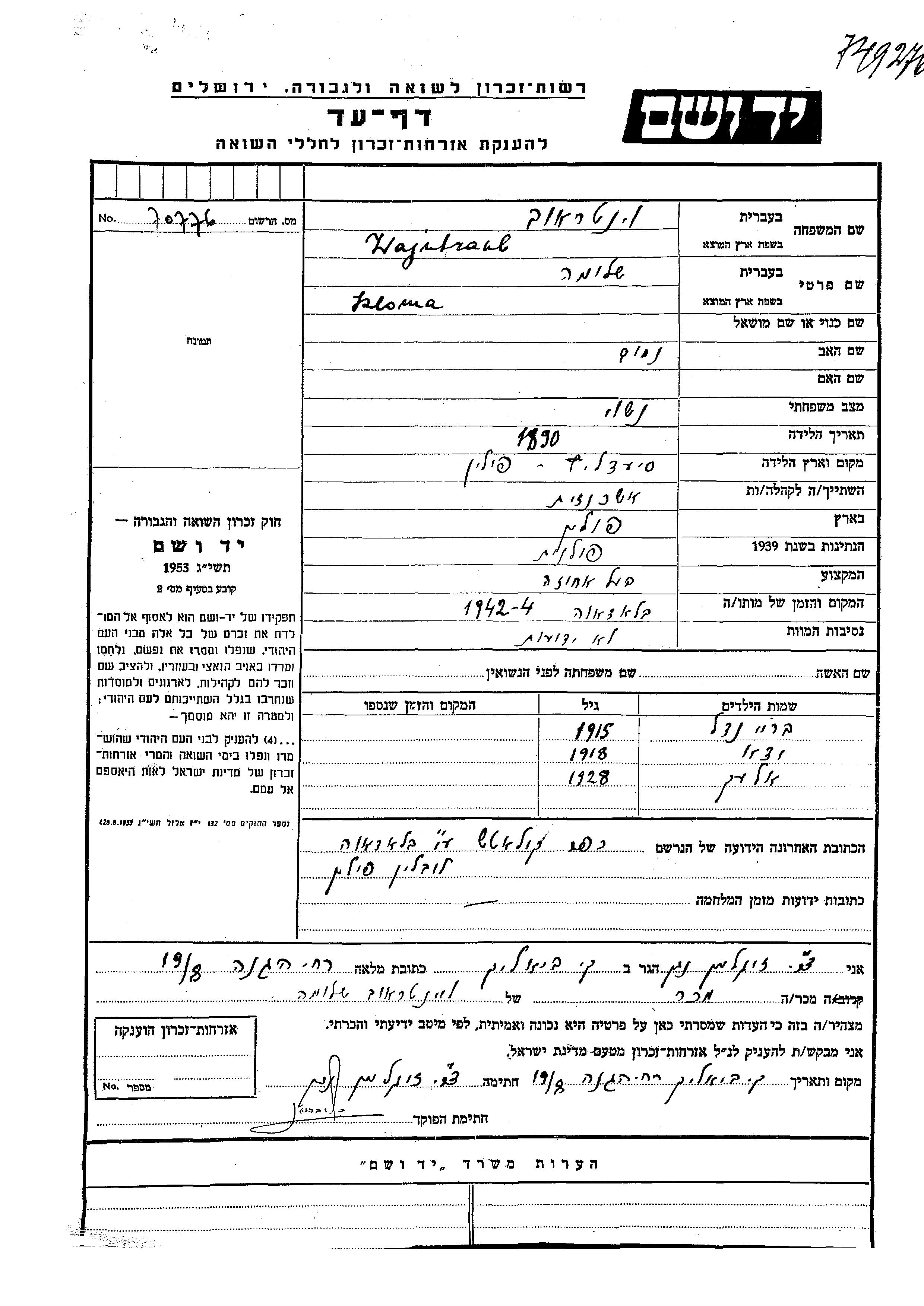 יד ושם - המפעל להנצחת השמות בדפי עד