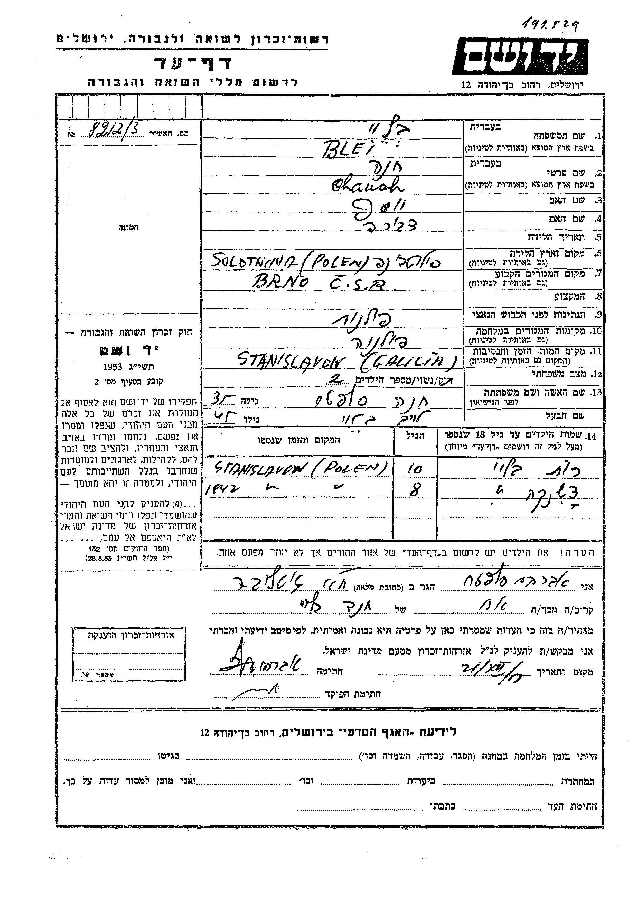 יד ושם - המפעל להנצחת השמות בדפי עד