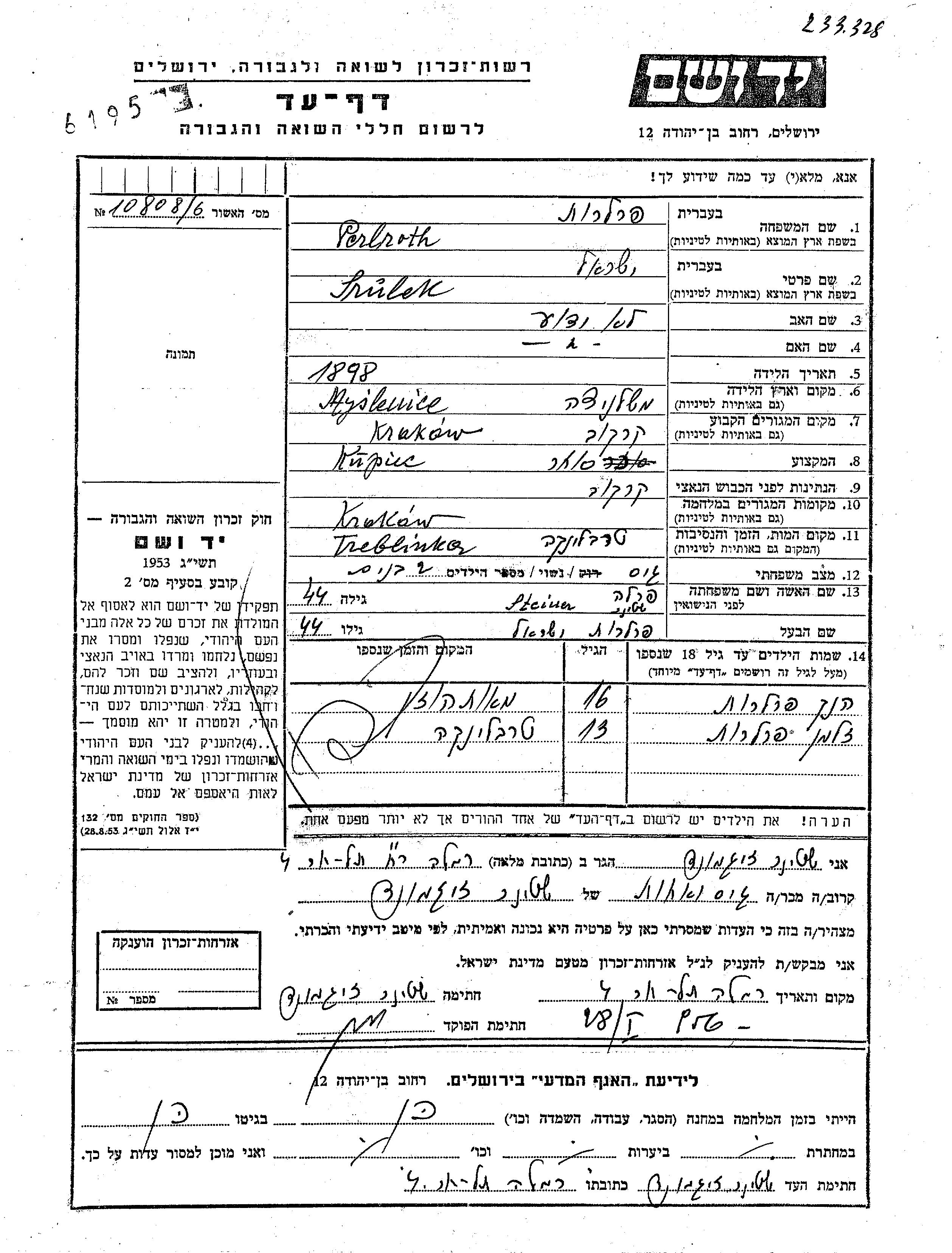 הנק Perlroth נולד לSrulek ופרלה לבית Steiner. הוא היה ילד. לפני מלחמת העולם השניה התגורר בKrakow שבפולין. בזמן המלחמה הוא היה בKrakow שבפולין. הנק נרצח בשואה.