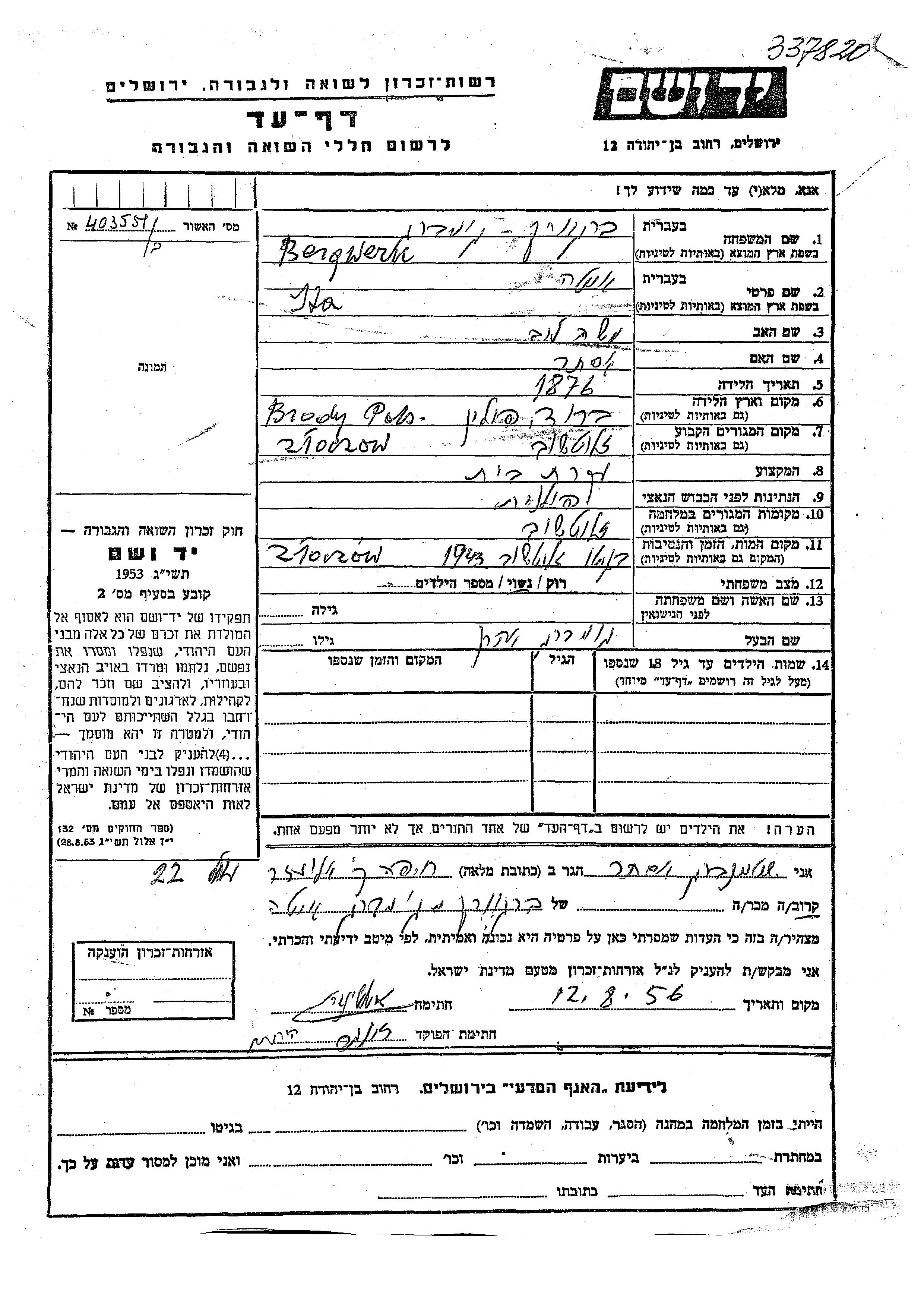 יד ושם - המפעל להנצחת השמות בדפי עד