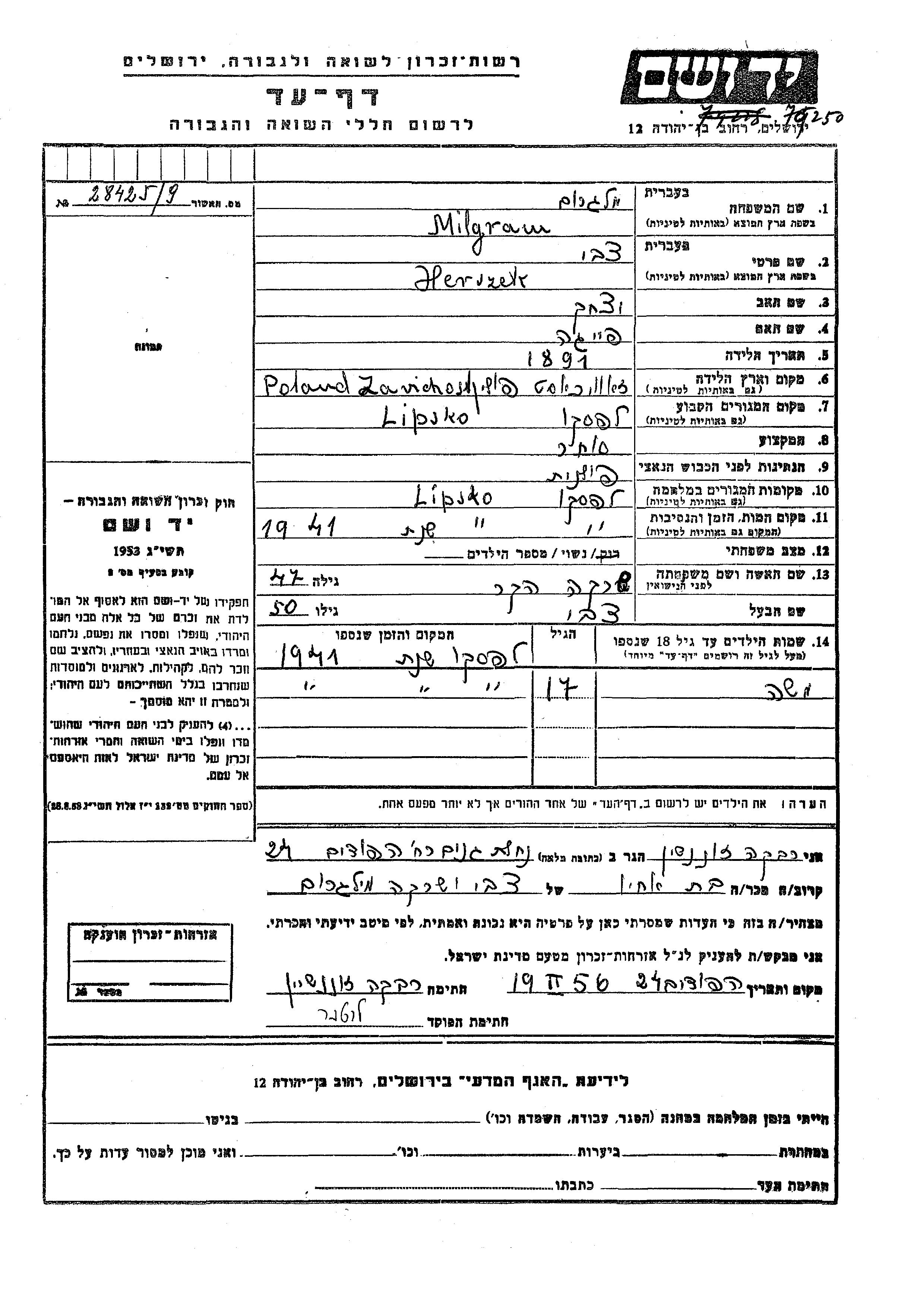יד ושם - המפעל להנצחת השמות בדפי עד