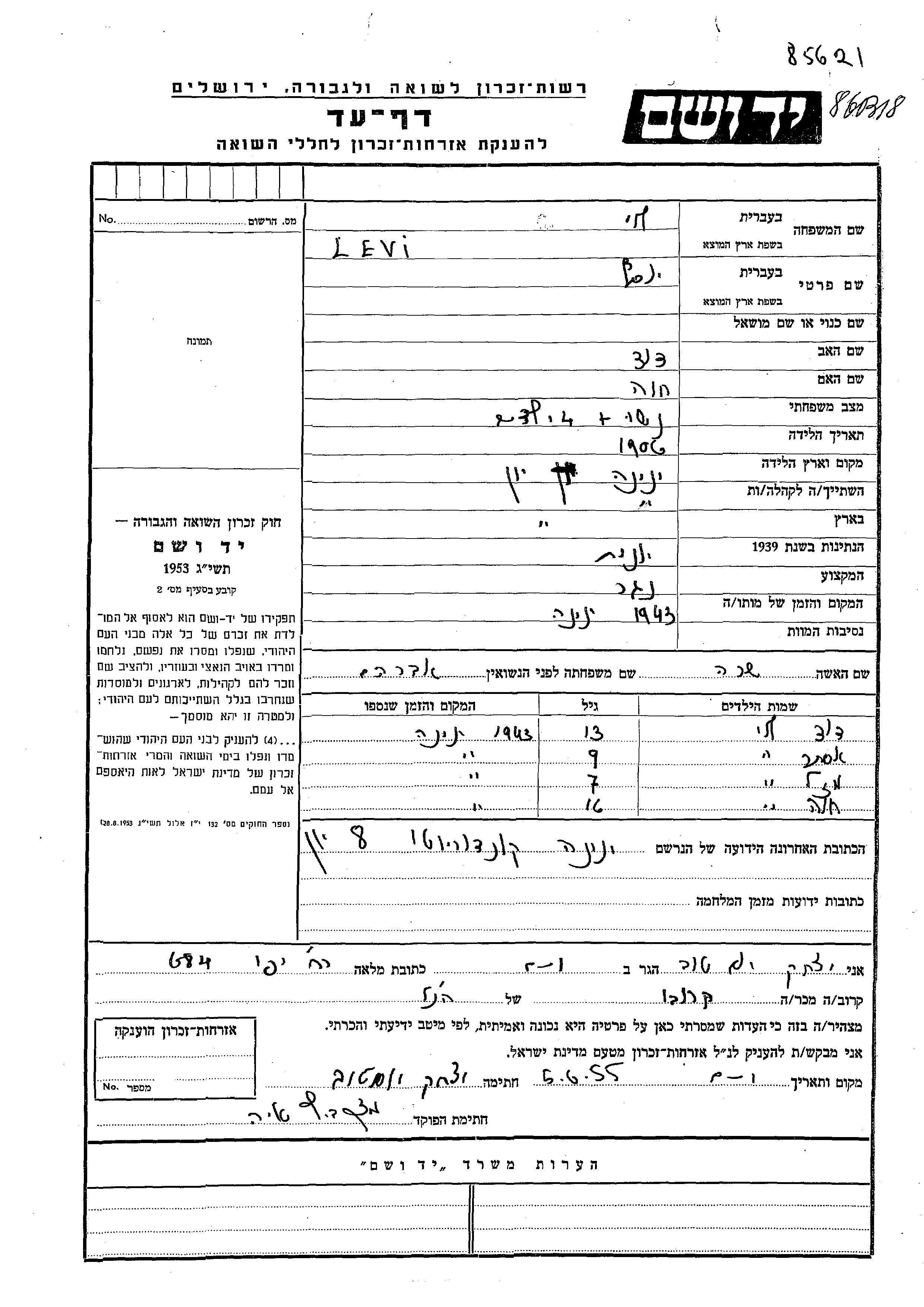 יד ושם - המפעל להנצחת השמות בדפי עד