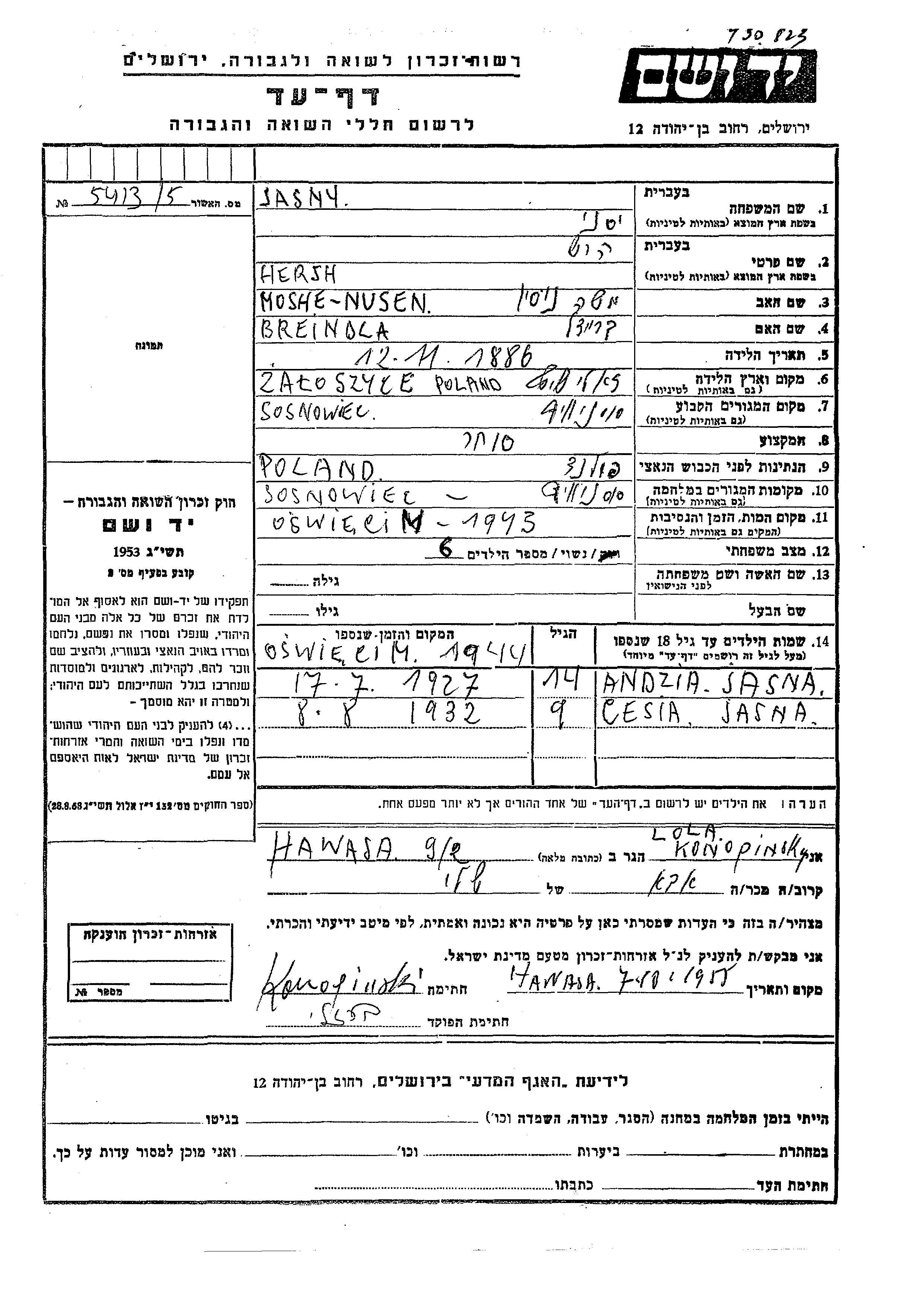 יד ושם - המפעל להנצחת השמות בדפי עד