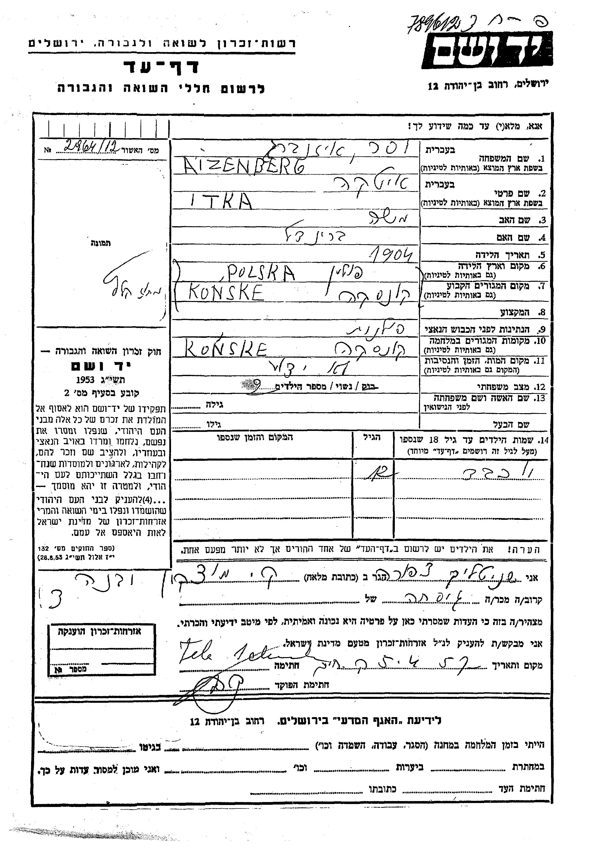יד ושם - המפעל להנצחת השמות בדפי עד