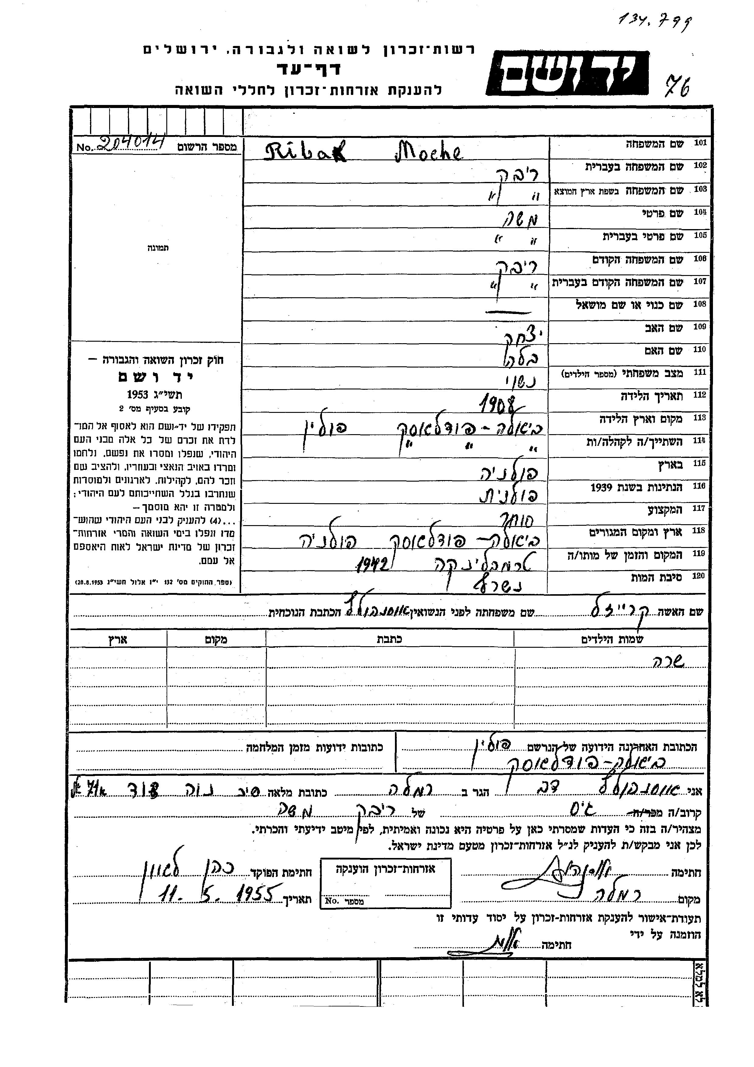 שרה ריבק נולדה לMoche ורייזל לבית אוסנהולץ. היא היתה ילדה. לפני מלחמת העולם השניה התגוררה בBiala Podlaska שבפולין. בזמן המלחמה היא היתה בBiala Podlaska שבפולין. שרה נרצחה בשואה.