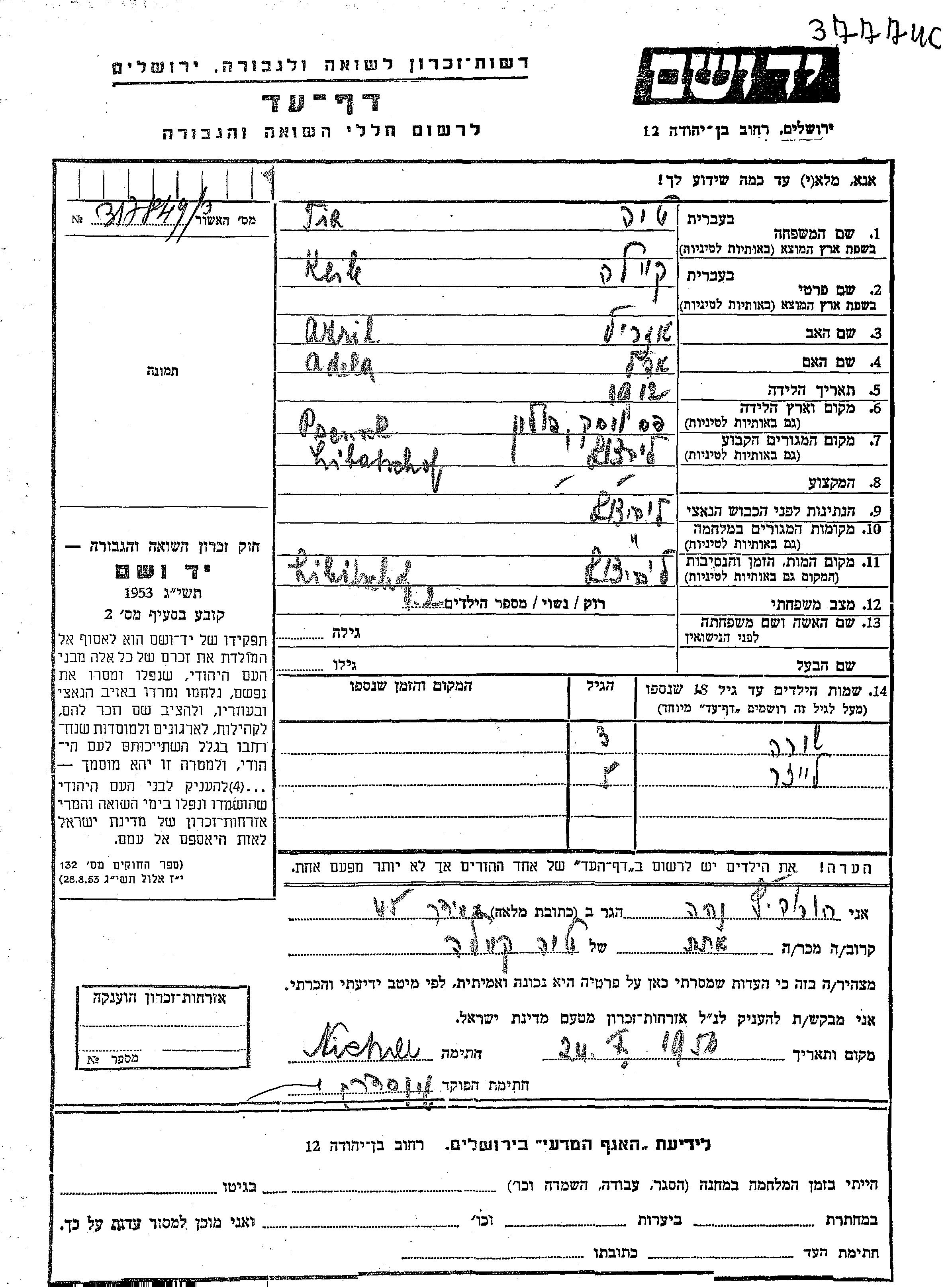 יד ושם - המפעל להנצחת השמות בדפי עד