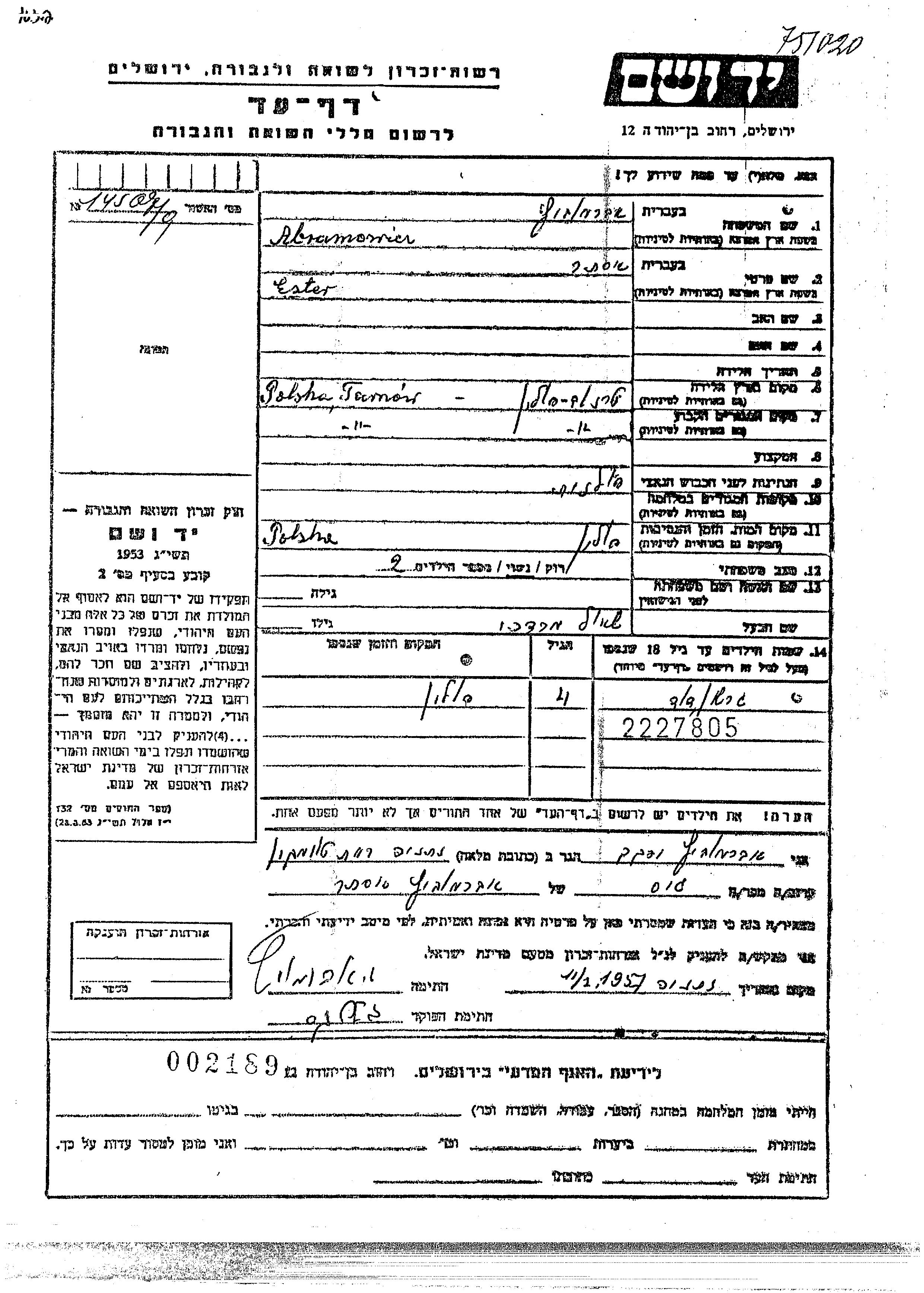 Abramowicz גרשון דוד Tarnow, פולין דף-עד
