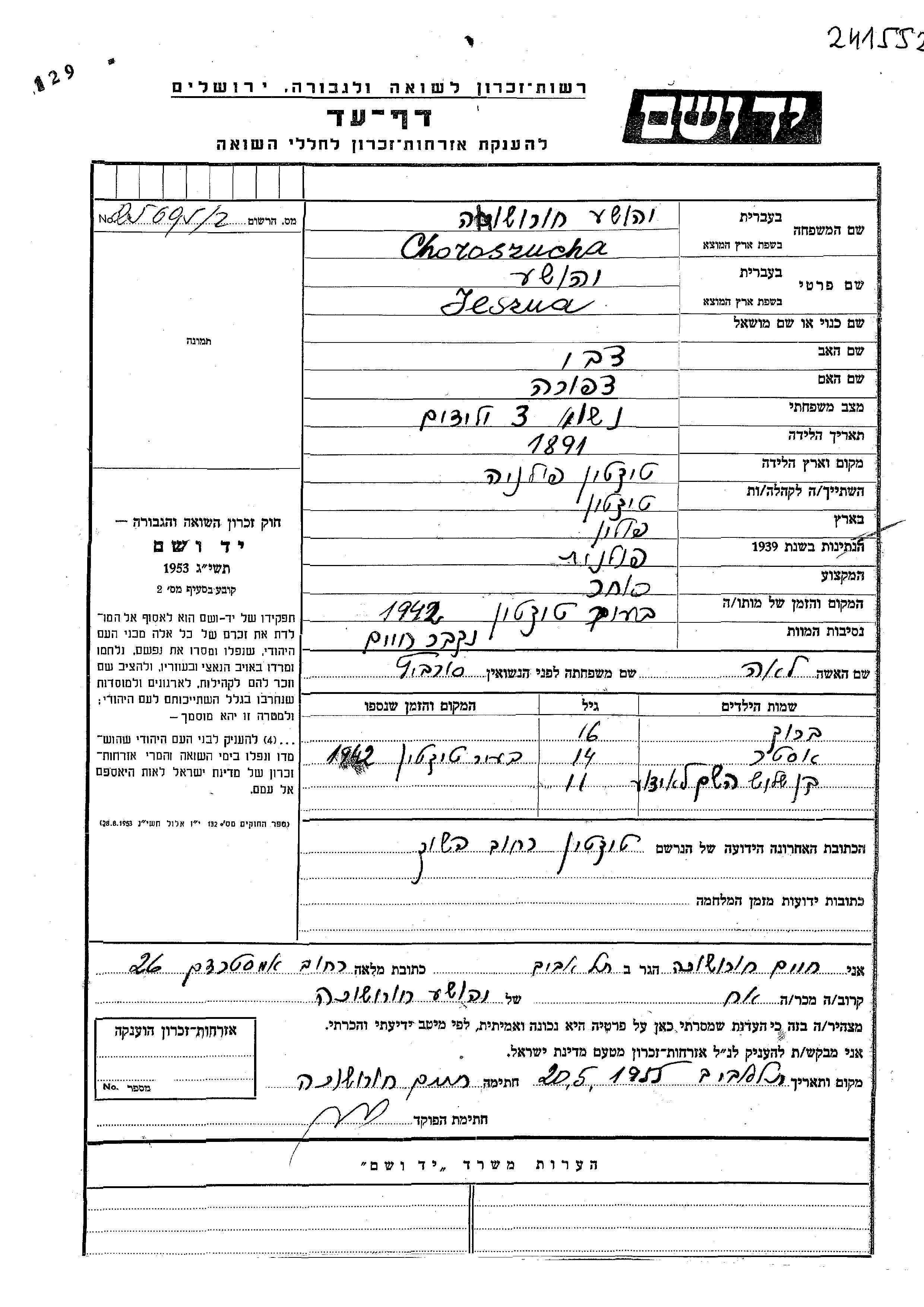 עיר/כפר, גטו/מחנה או אתר רצח או מחוז/אזור או מדינה. שם מקום ניתן לחפש רק בא-ב לטיני.
