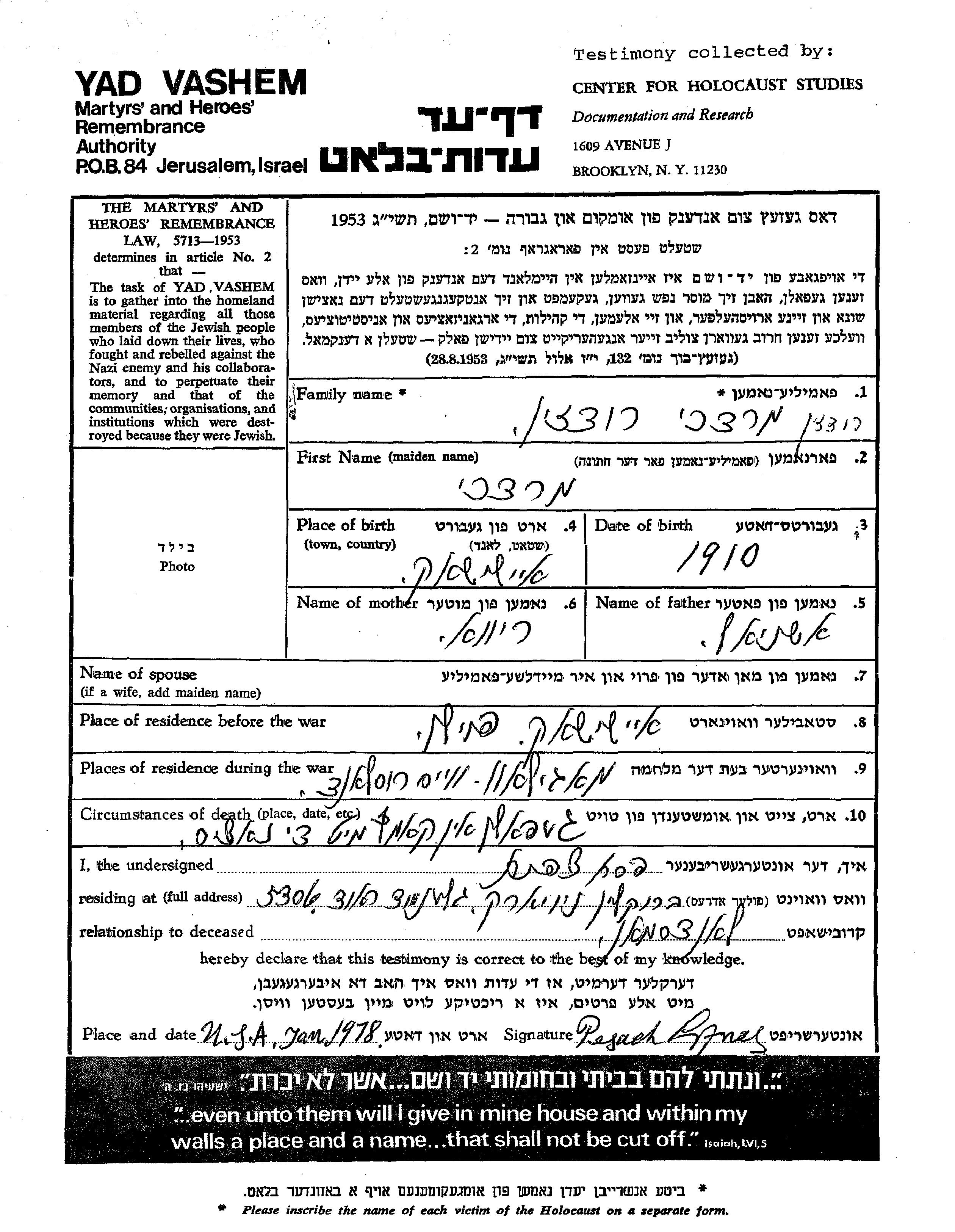 רודזין מרדכי 1910 Ejsziszak, פולין דף-עד