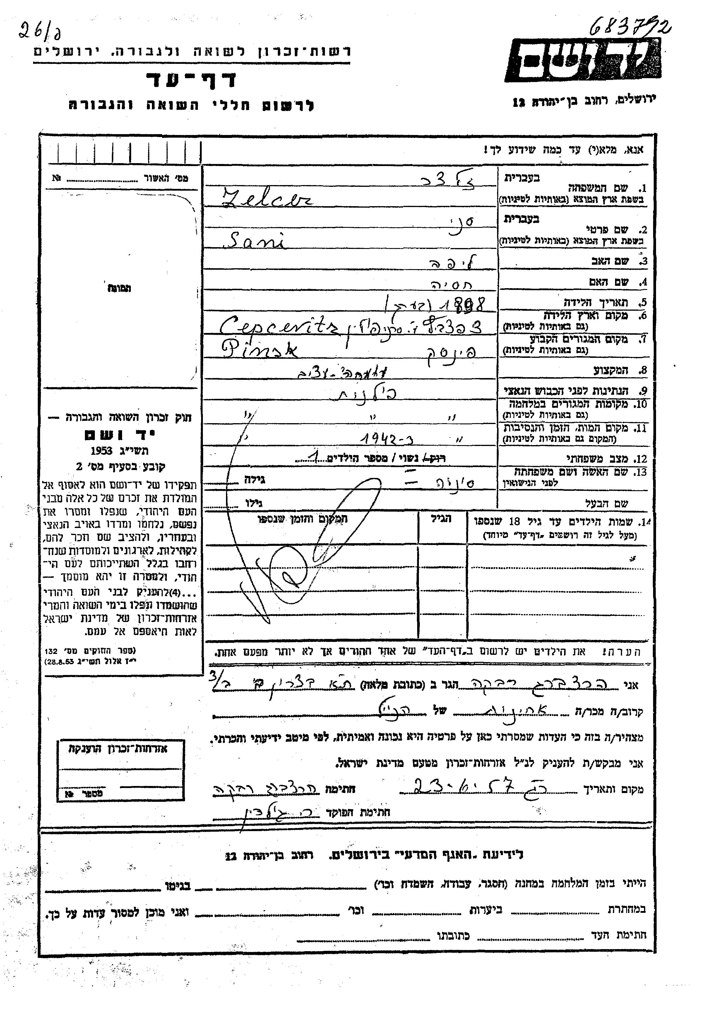 Zelcer Sany סני 1894 Pinsk, פולין דף-עד