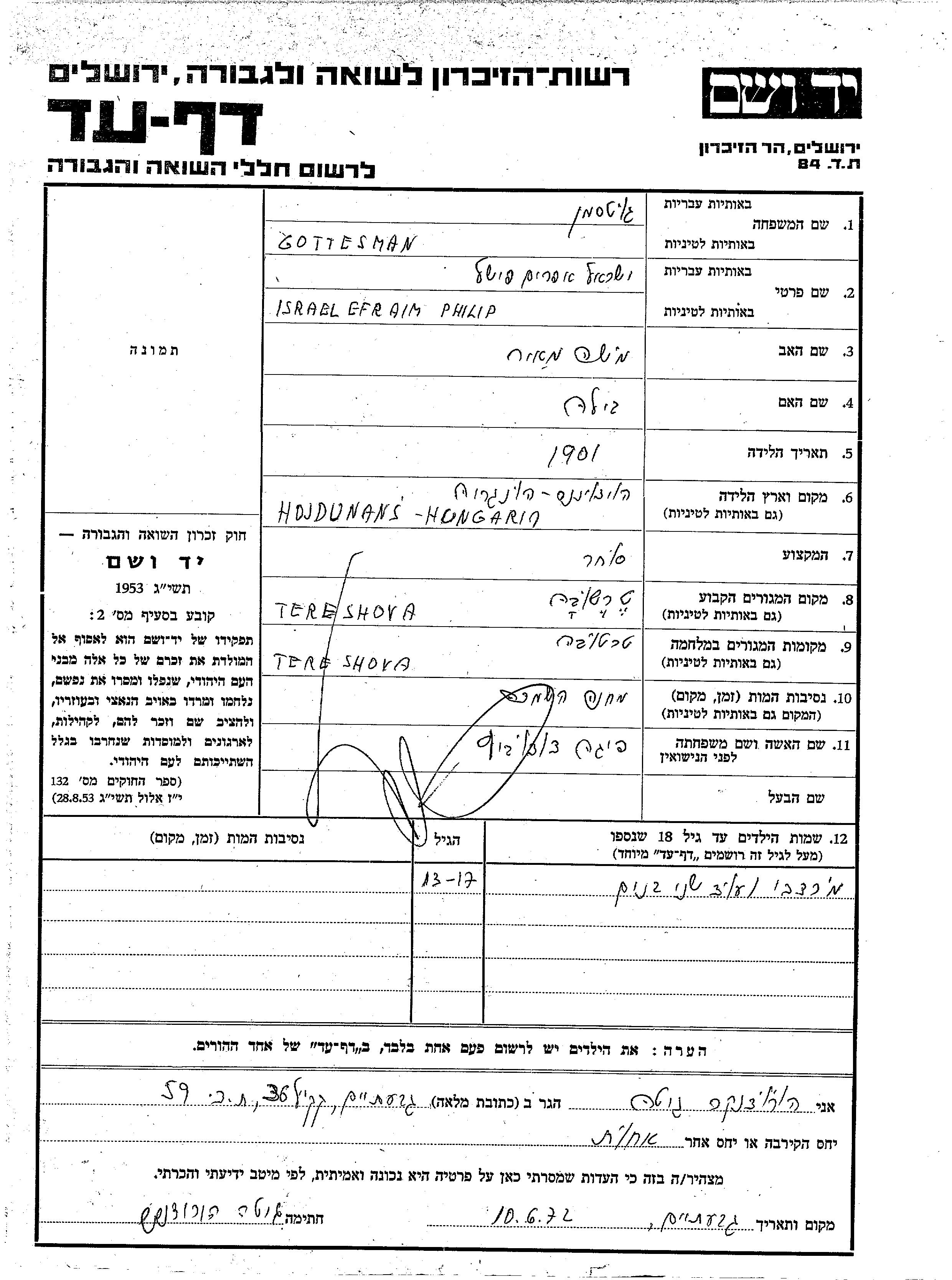 יד ושם - המפעל להנצחת השמות בדפי עד