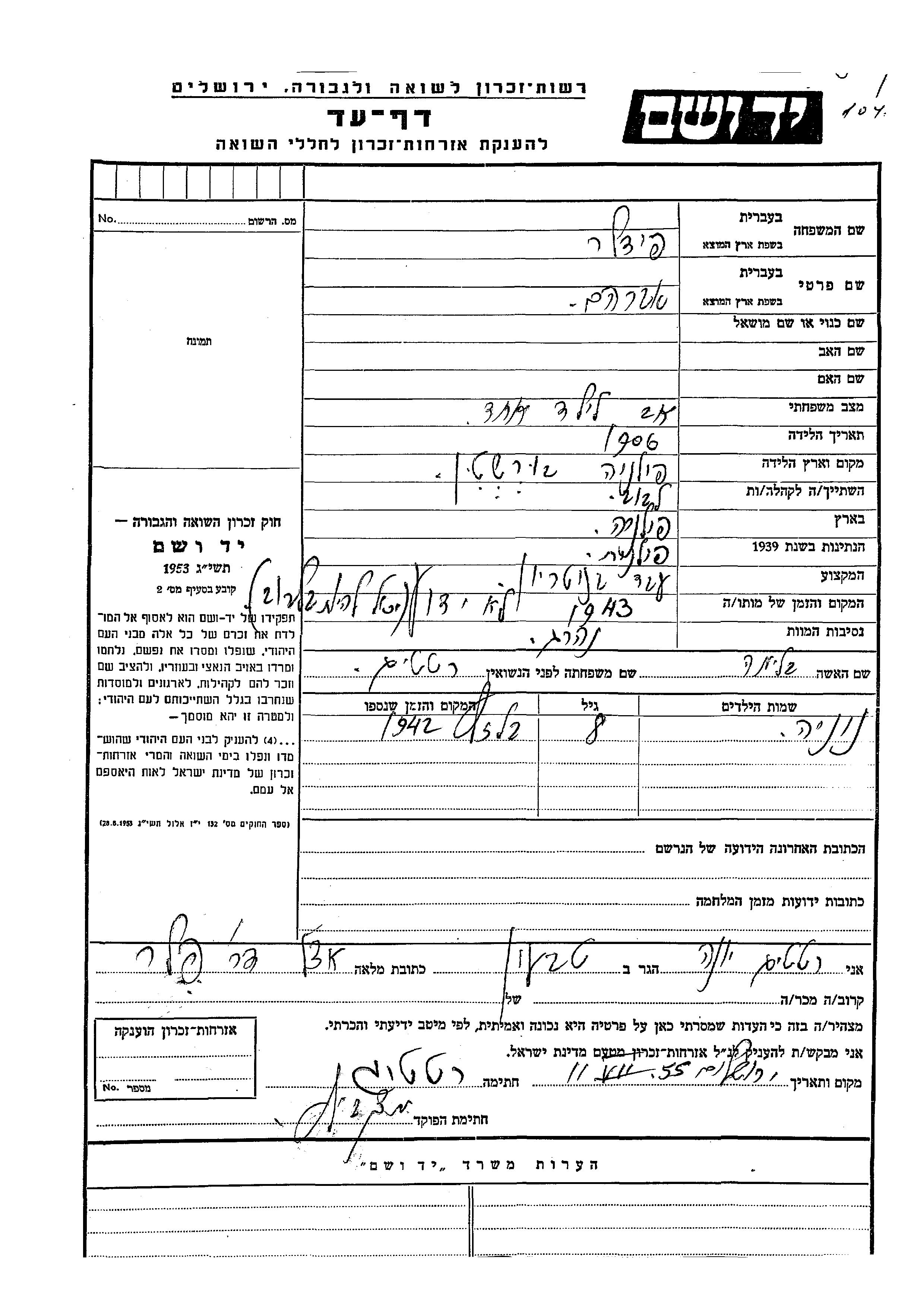יד ושם - המפעל להנצחת השמות בדפי עד