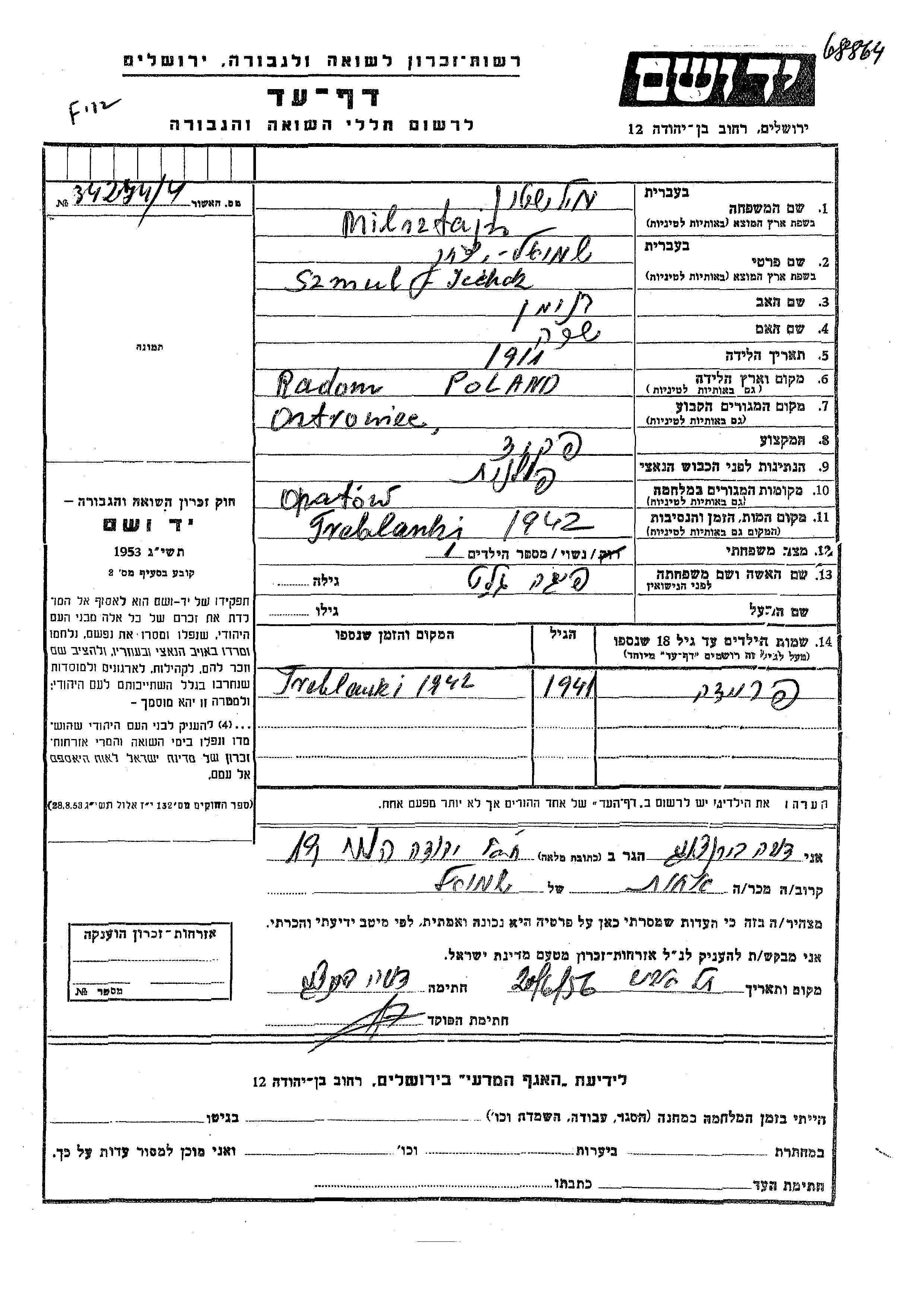 חיפוש שם מוסר דף העד. חיפוש לפי כל שם פרטי, כולל כינוי או שם חיבה
