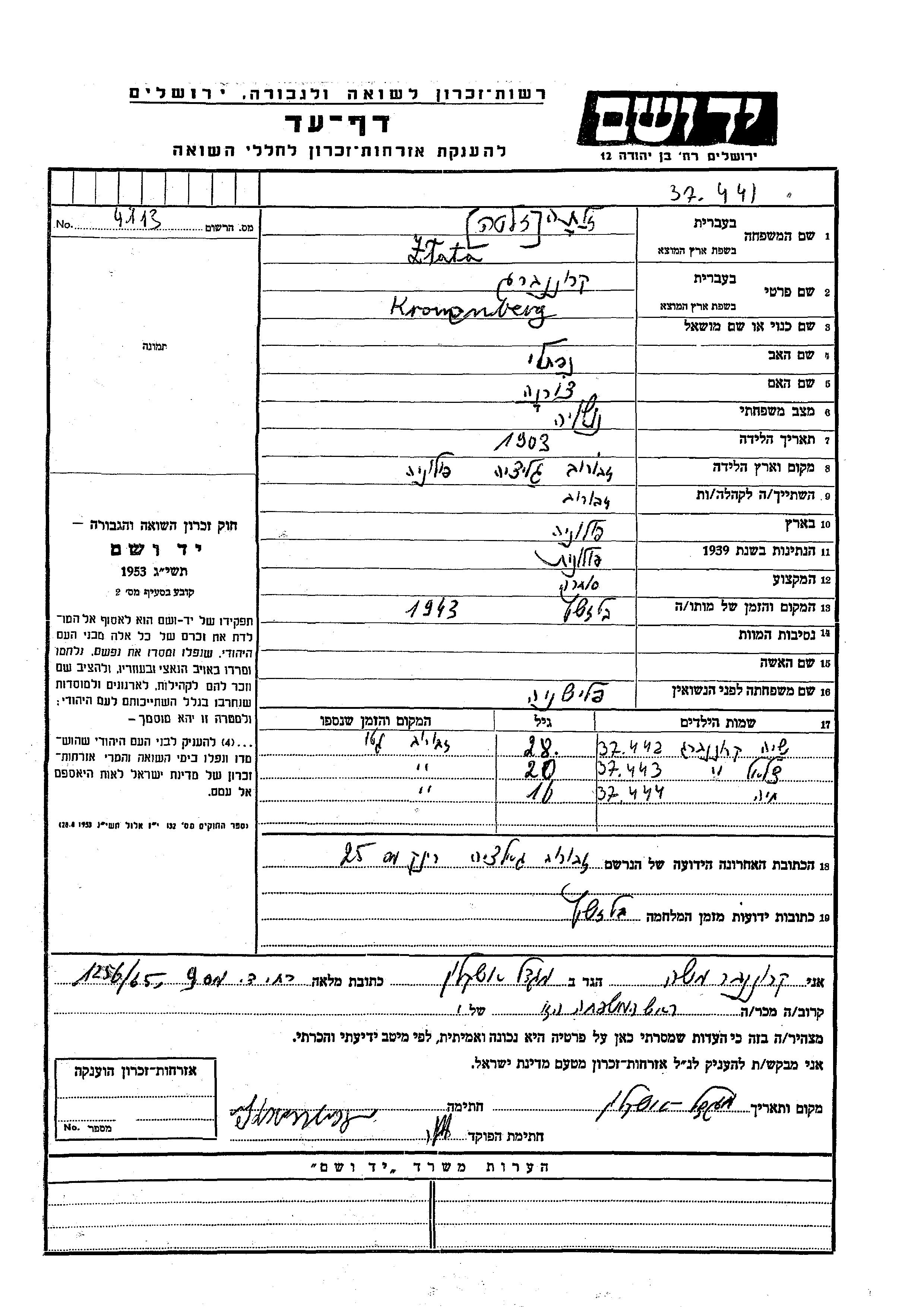 חיפוש שם מוסר דף העד. חיפוש לפי כל שם פרטי, כולל כינוי או שם חיבה
