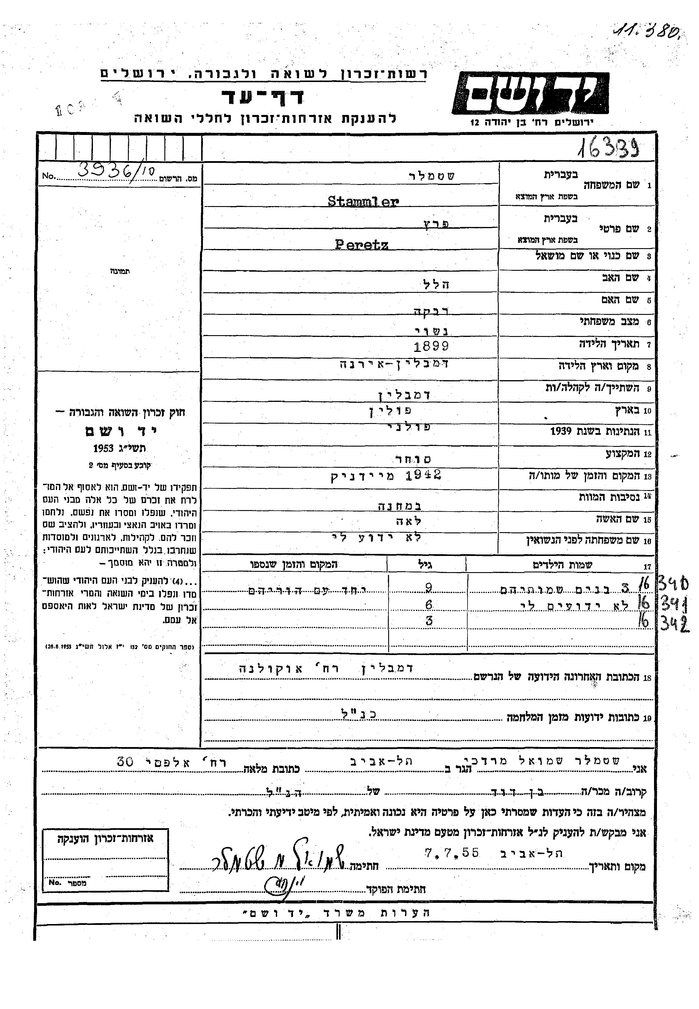 Stammler שם פרטי לא ידוע Deblin Irena, פולין דף-עד