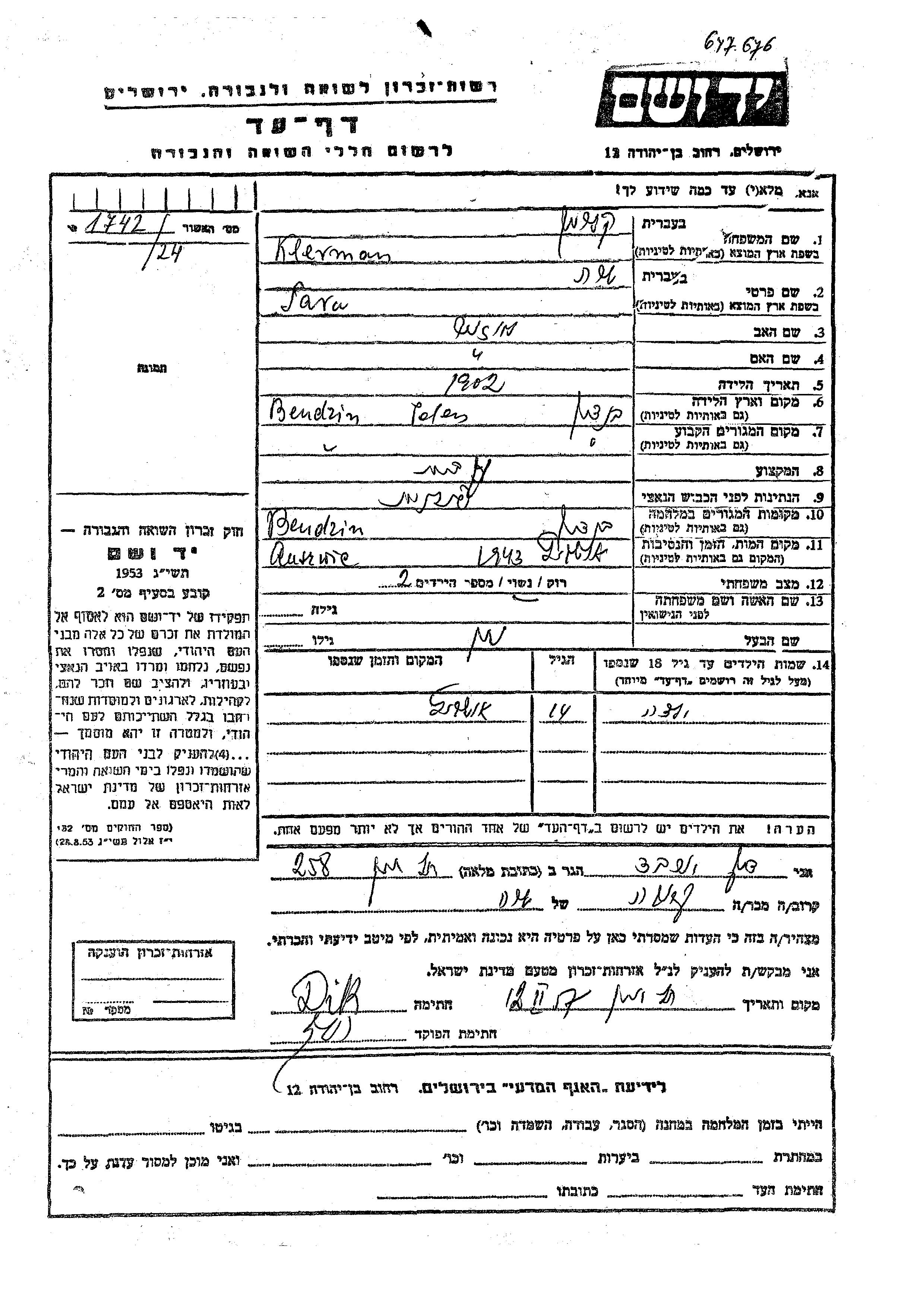 קלרמן שם פרטי לא ידוע Bendzin, פולין דף-עד