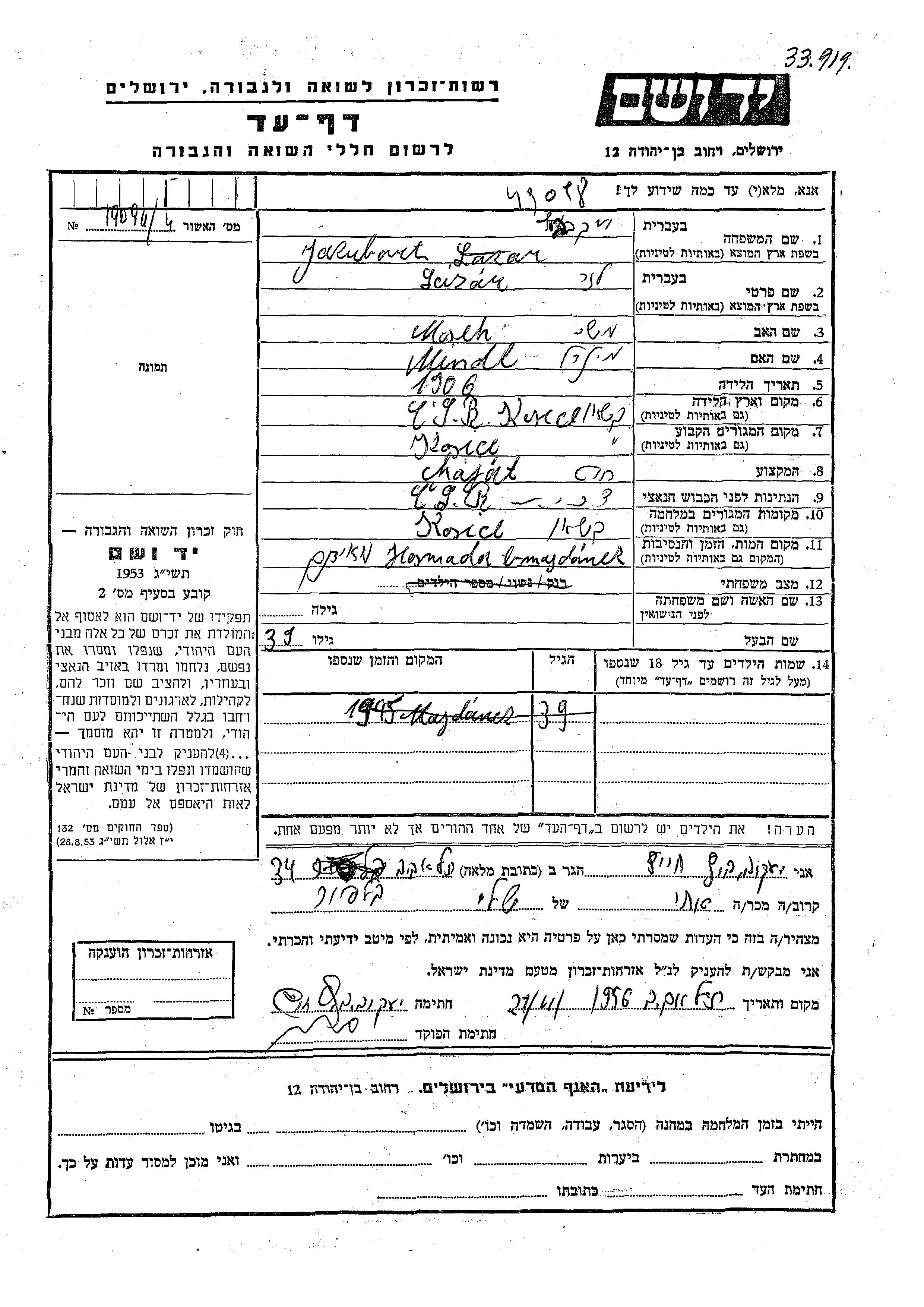 Yakubovich שם פרטי לא ידוע Kosice, צ'כוסלובקיה דף-עד