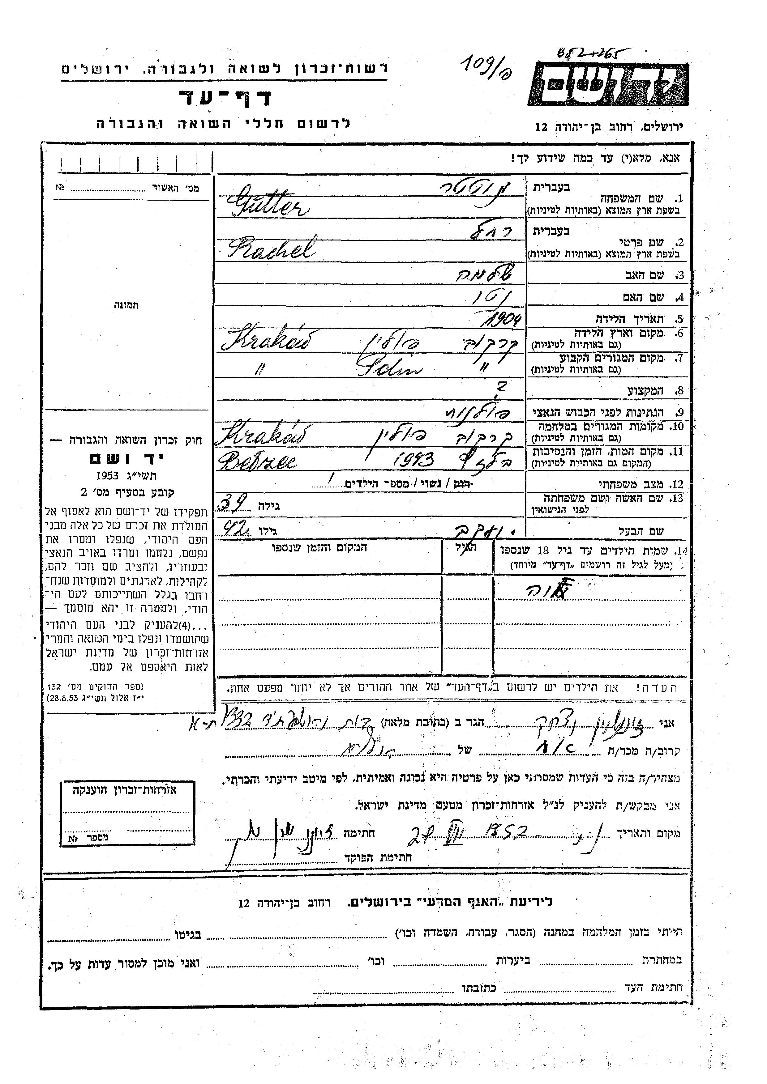 Gutter גוטטר רחל 1904 Krakow, פולין דף-עד