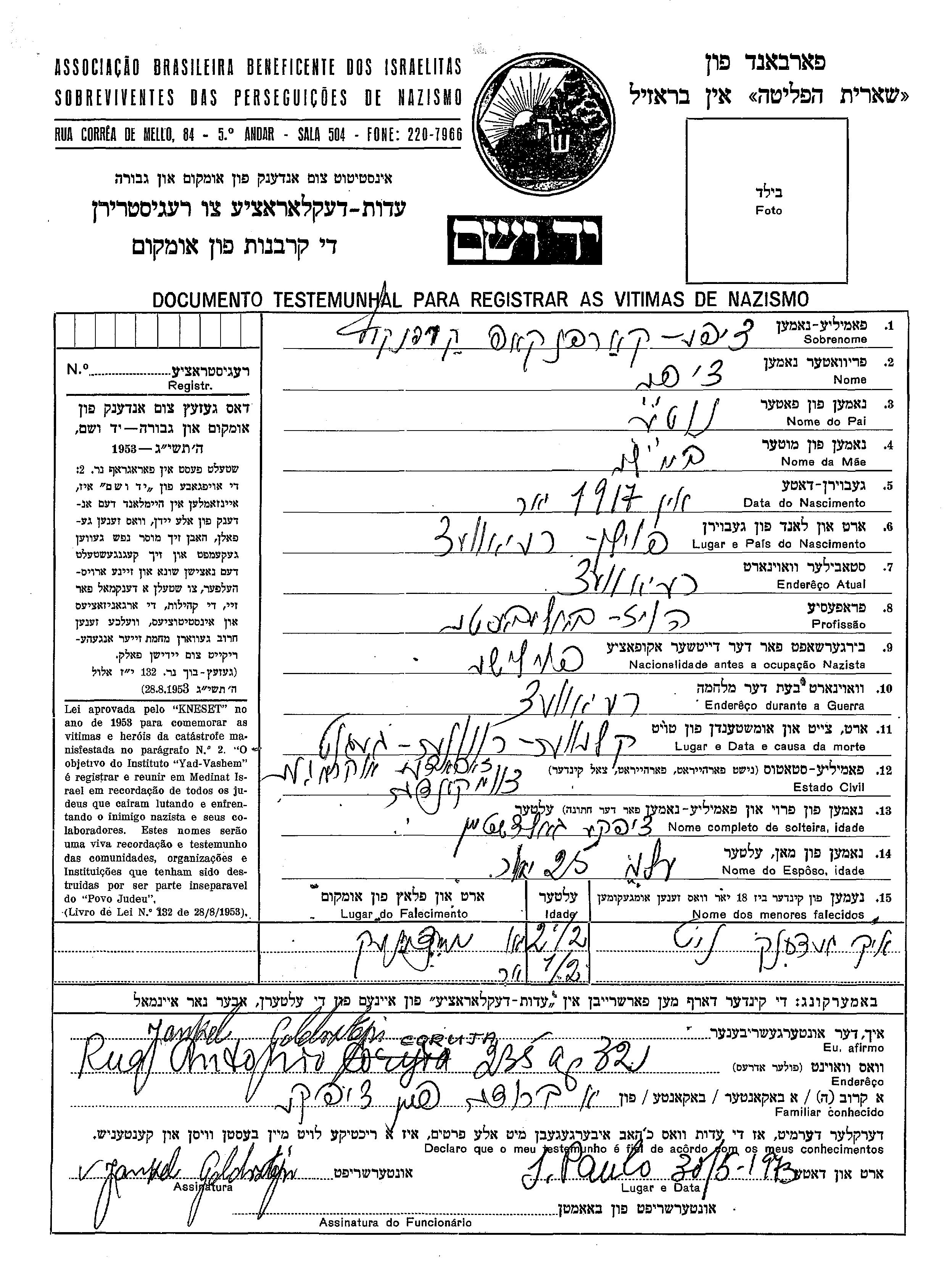עיר/כפר, גטו/מחנה או אתר רצח או מחוז/אזור או מדינה. שם מקום ניתן לחפש רק בא-ב לטיני.