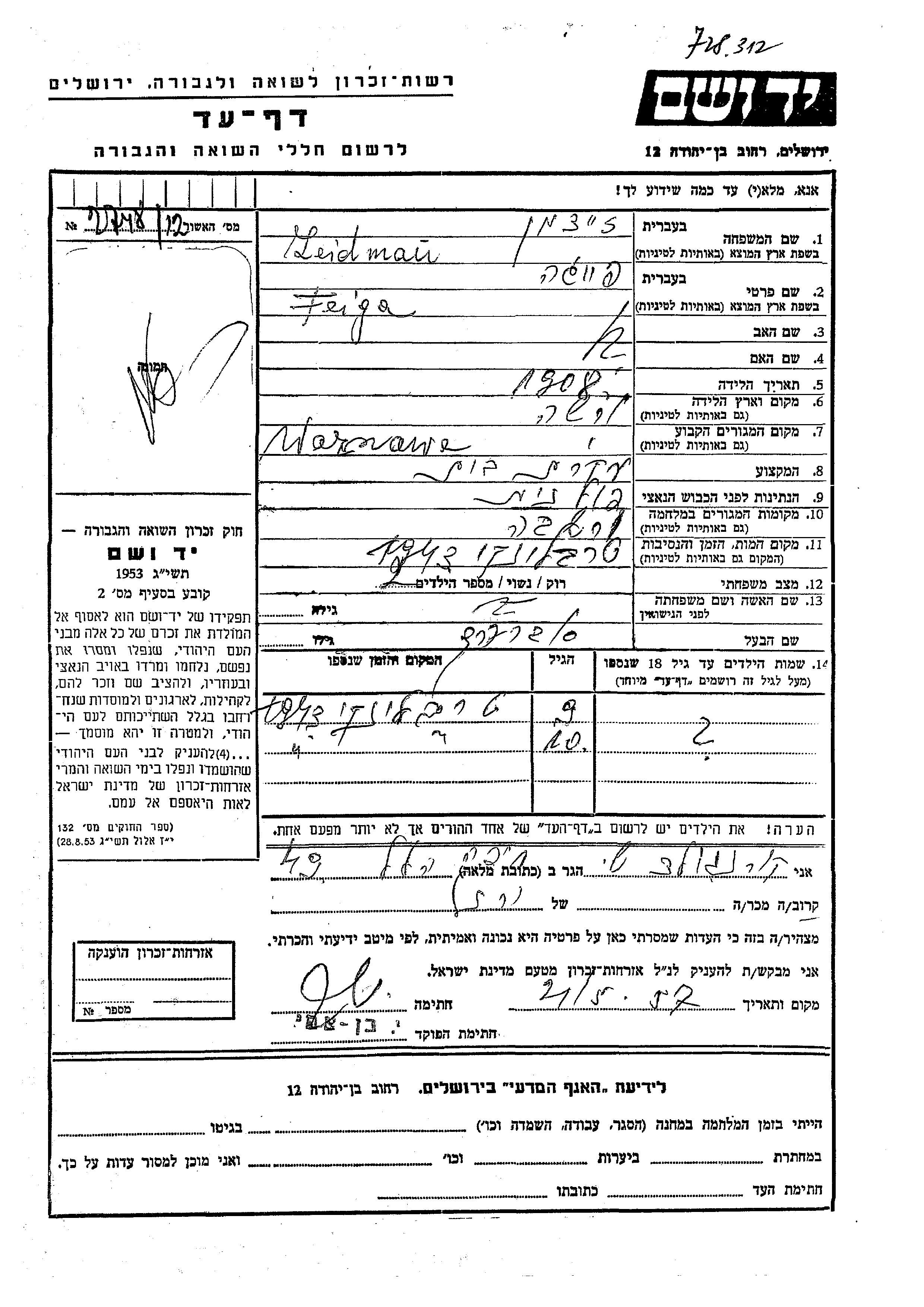 שם משפחה שם פרטי תאריך לידה מקום מקור המידע