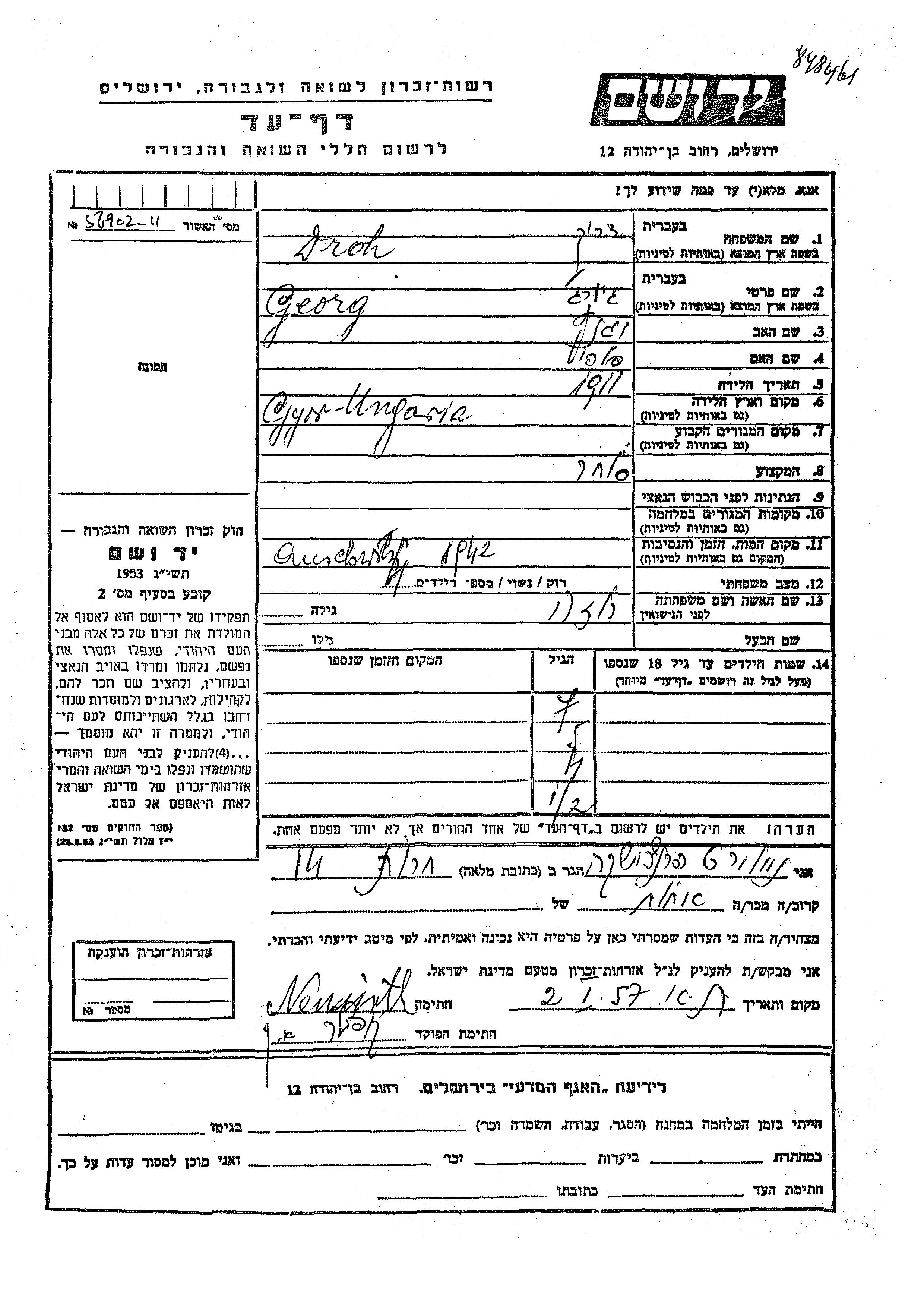 חיפוש שם מוסר דף העד. חיפוש לפי כל שם פרטי, כולל כינוי או שם חיבה