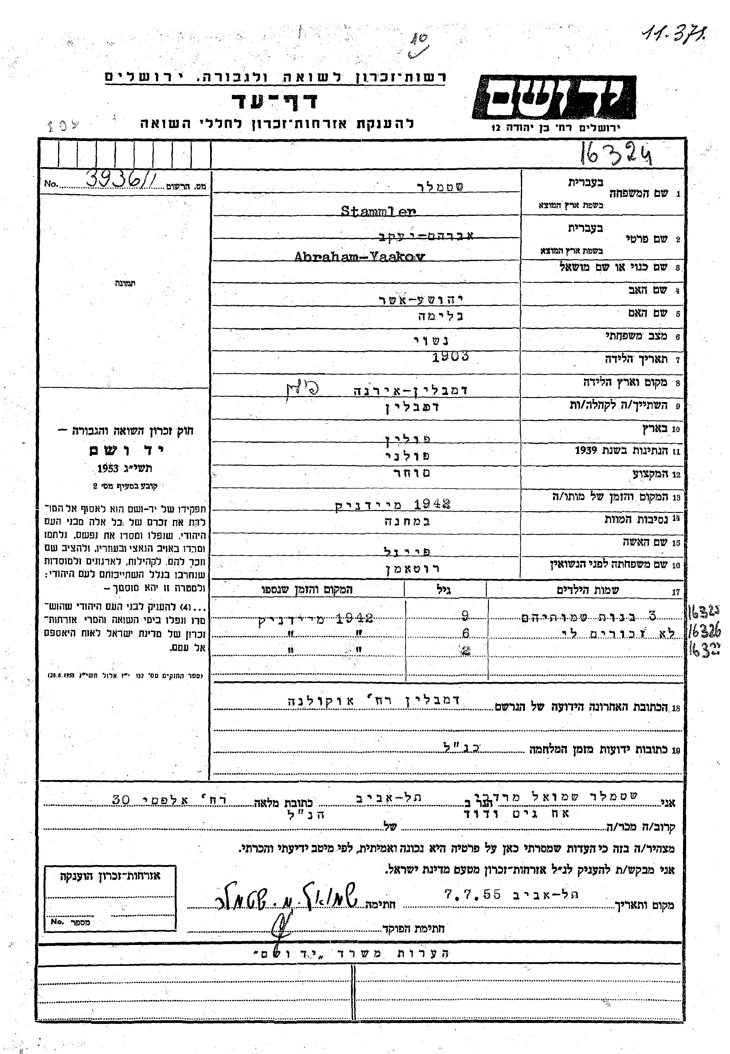 חיפוש שם מוסר דף העד. חיפוש לפי כל שם פרטי, כולל כינוי או שם חיבה