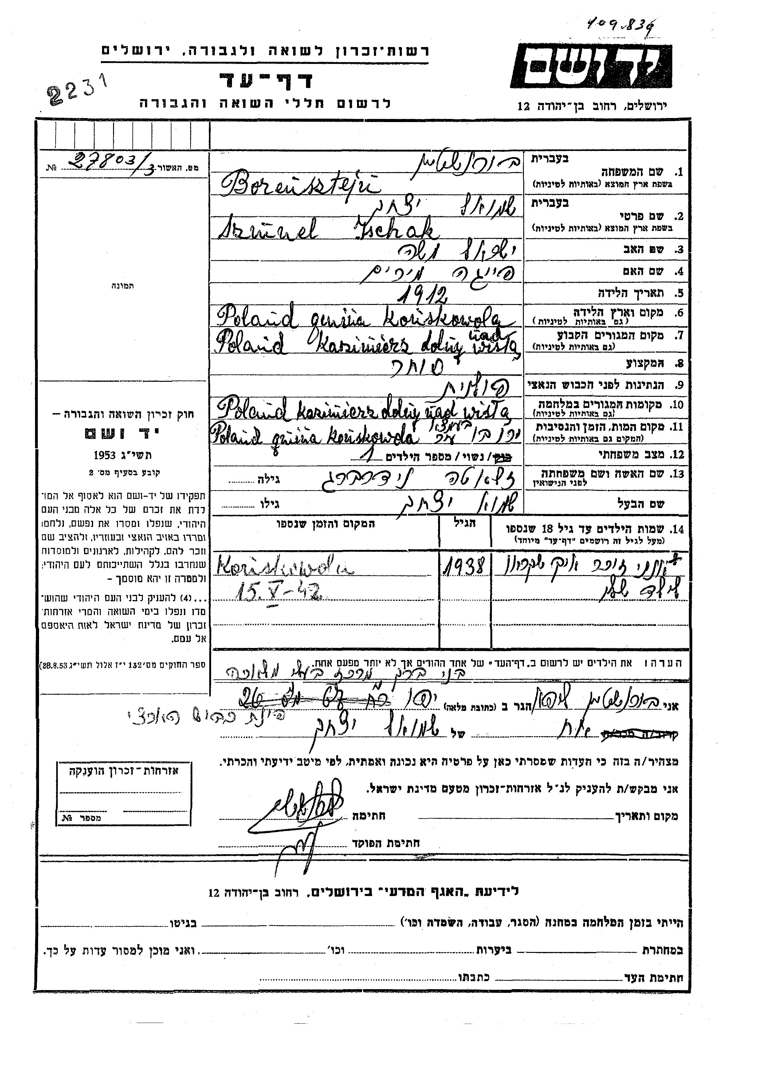 חיפוש שם מוסר דף העד. חיפוש לפי כל שם פרטי, כולל כינוי או שם חיבה
