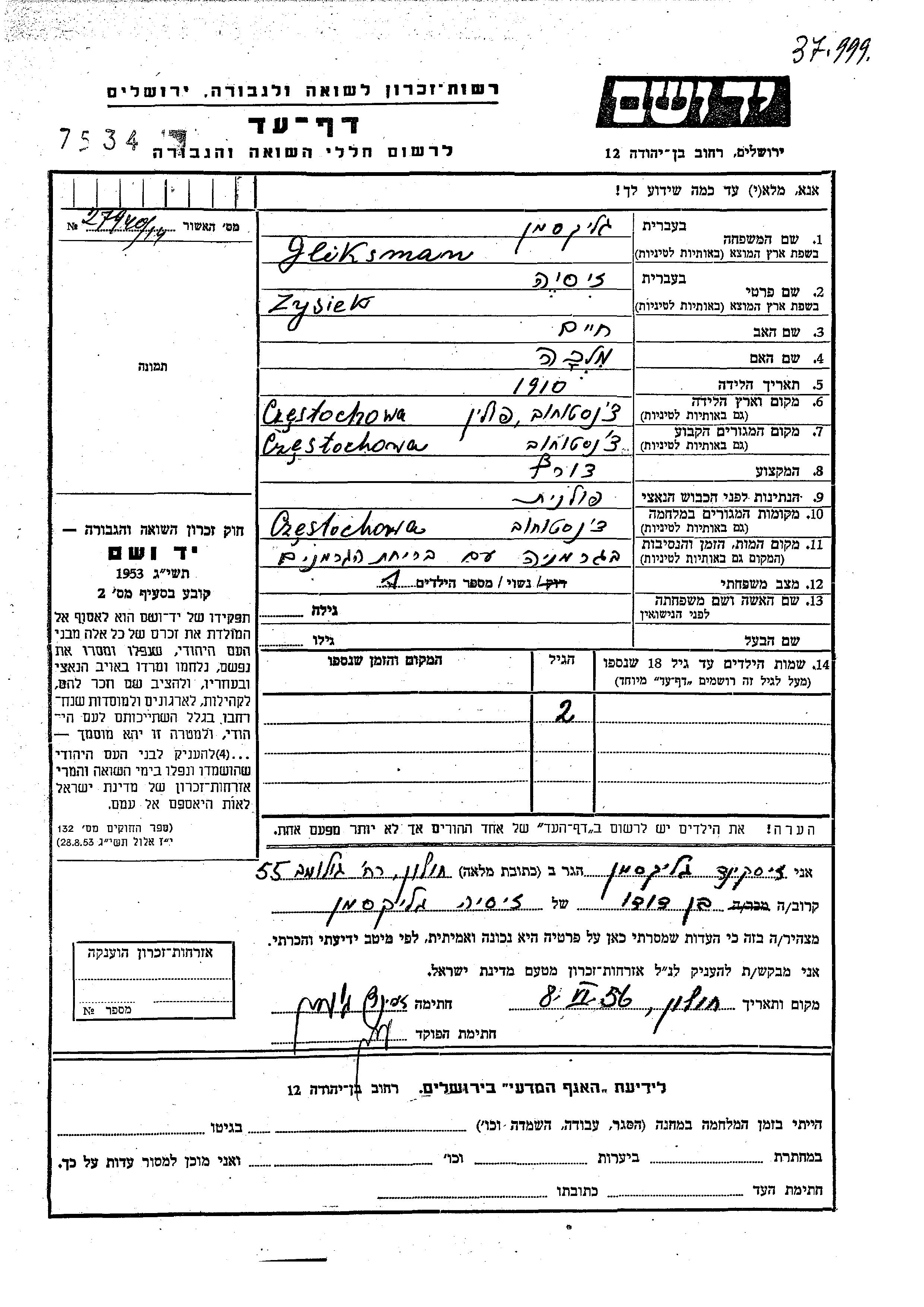 גליקסמן שם פרטי לא ידוע Czestochow, פולין דף-עד