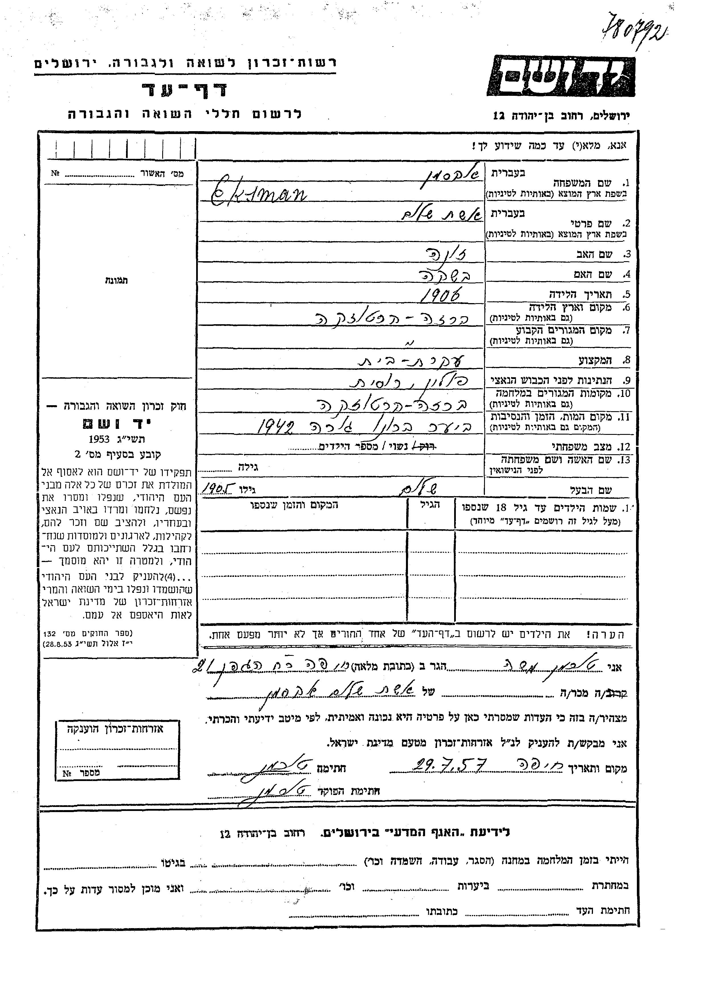 יד ושם - המפעל להנצחת השמות בדפי עד